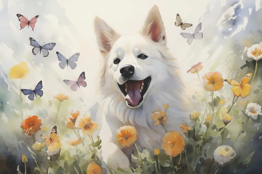 Bármilyen teret vidám szentéllyé varázsolhatsz ezzel a bájos falfestménnyel, amelyen egy játékos fehér kutya téblábol a vibráló virágok között, körülötte lobogó pillangókkal. Képzeld el, milyen örömet okoz ez a jelenet, szinte olyan, mint egy meleg ölelés egy napsütéses napon. A kutya játékos szelleme boldogságot sugároz, megállásra és mosolygásra invitálva mindenkit, aki arra jár. Tökéletes egy hangulatos olvasósarokba vagy egy élénk játszószobába, ez a falfestmény a természet varázsának egy csöppnyi varázsát adja az allergia nélkül. Ráadásul ki ne szeretné, ha egy vidám kölyökkutya feldobná a falait? Ez egy kis darabka öröm, amely minden napot különleges alkalomnak érezhet.