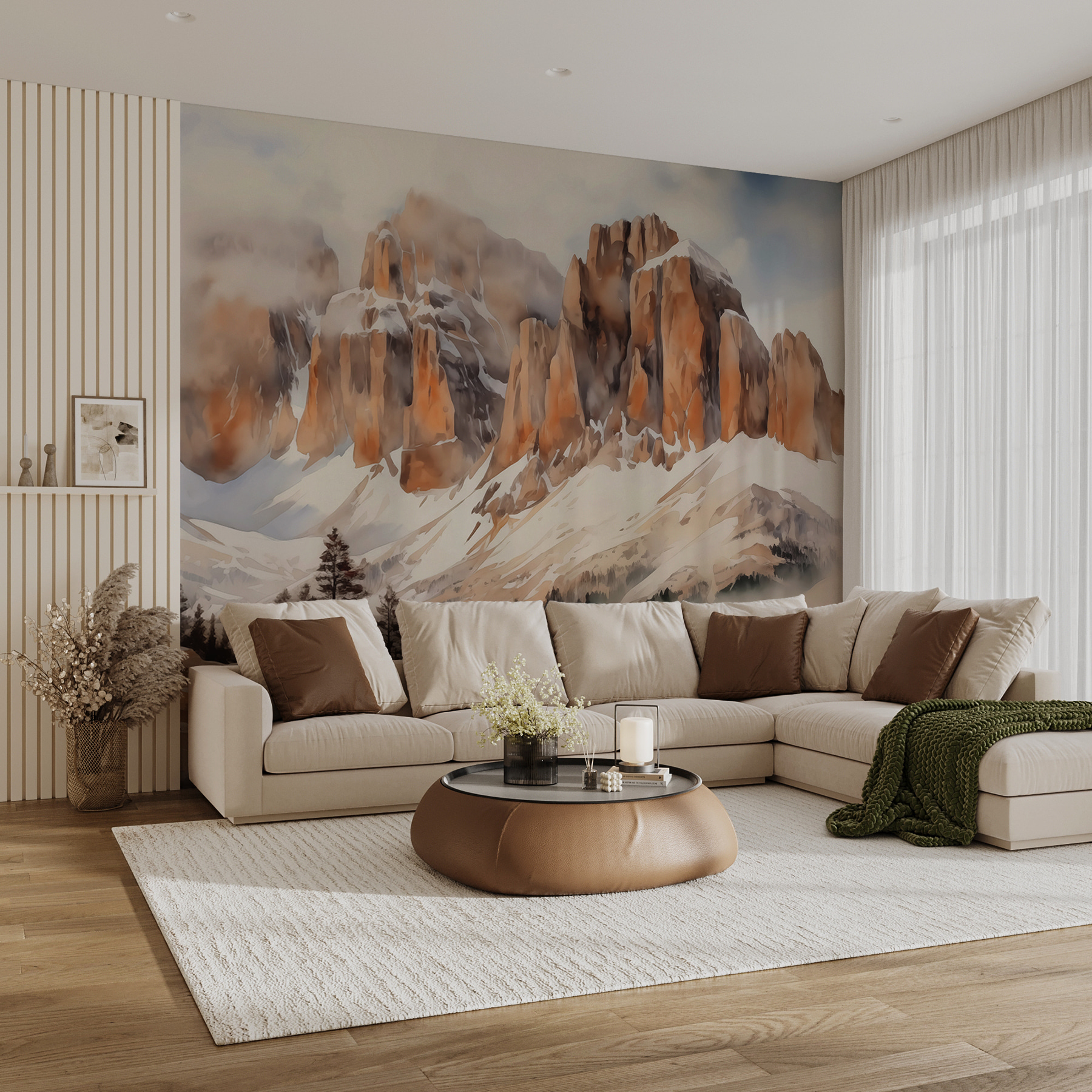Alakítson át bármilyen helyiséget ezzel a lenyűgöző falfestménnyel, amely egy lágy felhőkbe burkolt, rugalmas fákkal tarkított hegyvonulatot ábrázol. Képzelje csak el – minden reggel felébred, és ezek a fenséges hegycsúcsok fogadják; olyan, mint egy mini vakáció otthonában. A földszínű színek hangulatos hangulatot árasztanak, ami meleg és hívogató érzést kölcsönöz a tereknek. Legyen szó akár nappaliról, akár békés hálószobáról, ez a falfestmény a kalandról és a nyugalomról suttog meséket. Ráadásul remek beszélgetésindító, amikor a barátok átjönnek. Ki ne szeretne beszélgetni a nagyszerű kilátások felfedezéséről?