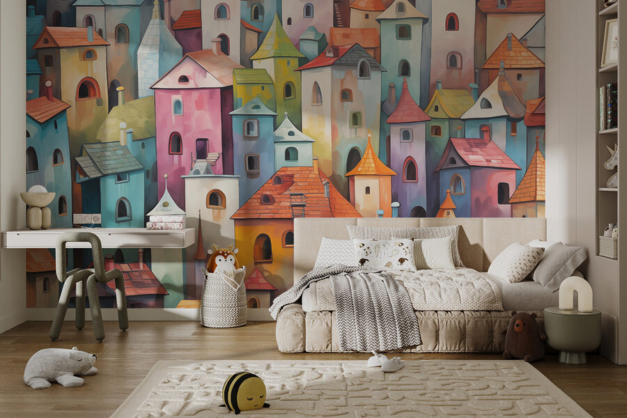 Változtasson bármelyik falat élénk utcai jelenetté ezzel a színes épületeket ábrázoló falfestménnyel. Képzeld el, hogy egy szeszélyes faluba lépsz, ahol minden egyes épület a saját történetét meséli el, vibráló árnyalatok táncolnak a fényben. Képzelj el egy hétvégi baráti összejövetelt, ahol a nevetés visszhangzik, miközben megcsodálják ennek a műalkotásnak a játékos báját. Olyan, mintha egy kis vidámságot hozna a nappalidba – vagy a konyhádba, vagy bárhová, ahová csak szeretnéd! Tökéletesen felrázza az unalmas teret, és egy csipetnyi varázslatot ad, amely mindenkit mosolyra fakaszt. Ki ne érezné magát inspirálva egy színfolt által?