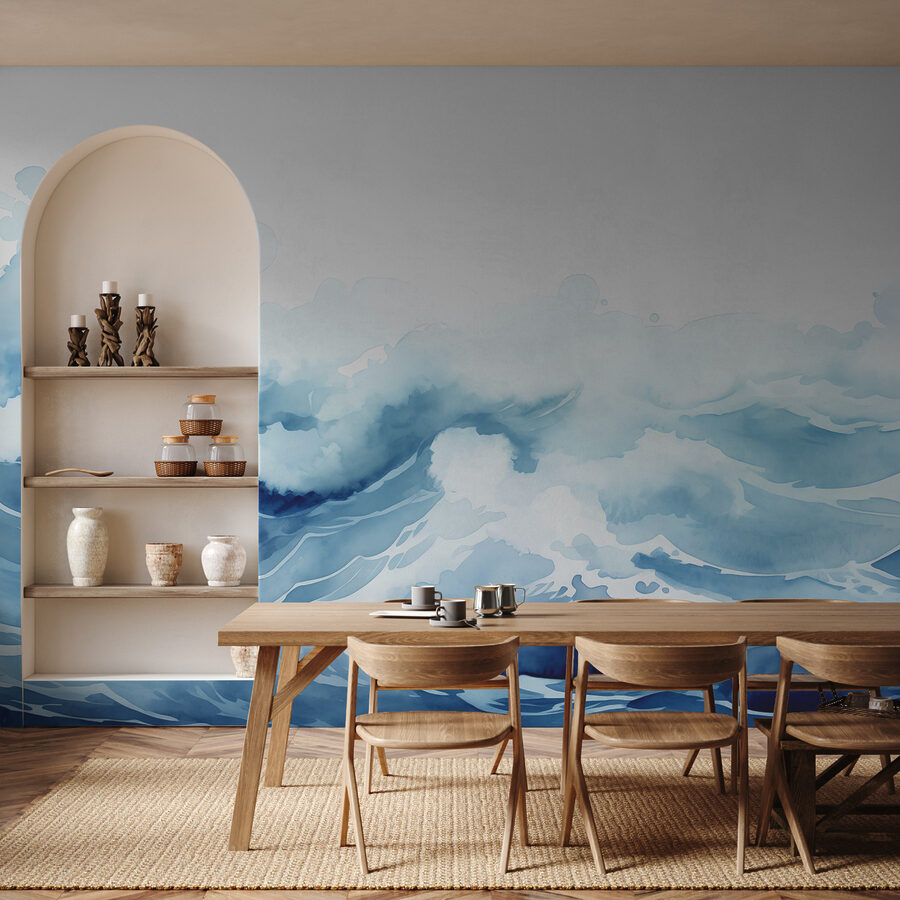 Alakítsa át terét ennek a hullámokat és felhőket ábrázoló akvarell falfestménynek a szépségével. Képzelje el, hogy egy nyugodt légkörbe lép, ahol a nyüzsgés és a nyüzsgés elhalványul, és csak Ön és az óceán lágy ritmusa marad. A lágy kékek és fehérek békés hangulatot idéznek, tökéletes egy hangulatos sarok kialakításához, ahol olvashatsz vagy egyszerűen csak álmodozhatsz, miközben a kedvenc italodat kortyolgatod. Olyan, mintha egy darab tengerpartot hozna az otthonába – nem szükséges homokos lábujjakat hordania! Tökéletes a nappaliban, hálószobában vagy akár egy kreatív sarokban. Készüljön fel a bókokra és esetleg egy kis irigységre a barátai részéről!