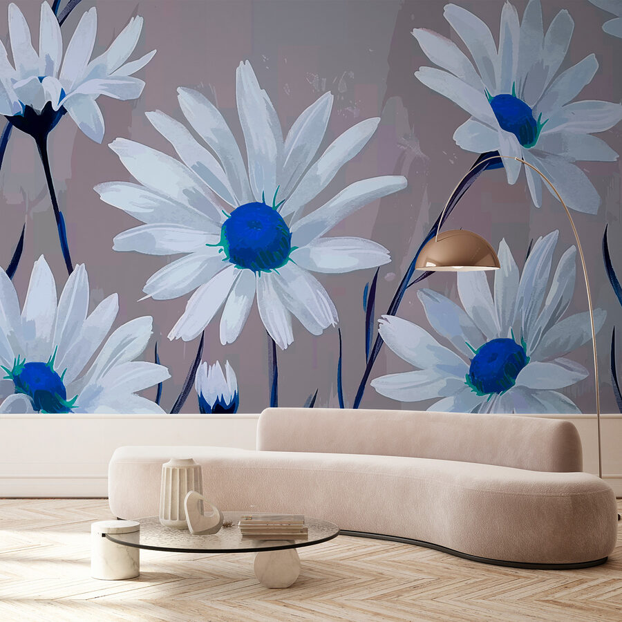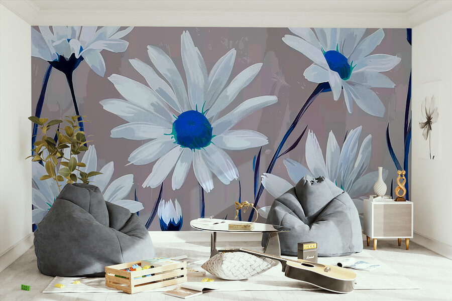 Bármelyik szobát vidám kertté varázsolhatja ezzel a “Falfestmény fehér virágok csoportja kék középponttal”. Képzeld el, hogy belépsz a helyiségedbe, és azonnal felemelő érzéssel tölt el, ahogy ezek a játékos virágok visszabámulnak rád, mindegyikük mókás kék középpontjával. Olyan, mintha egy beszédes zöld hüvelykujj lenne a faladon. Ezek a virágok tökéletesen feldobnak egy hangulatos zugot, vagy a nappaliban is megjelenhetnek, hiszen jó hangulatot és melegséget árasztanak. A barátaid azt hihetik, hogy egy titkos kertet rejtegetsz. És hé, ki ne szeretné a természet zümmögését a házban, különösen, ha nem kell öntözni?