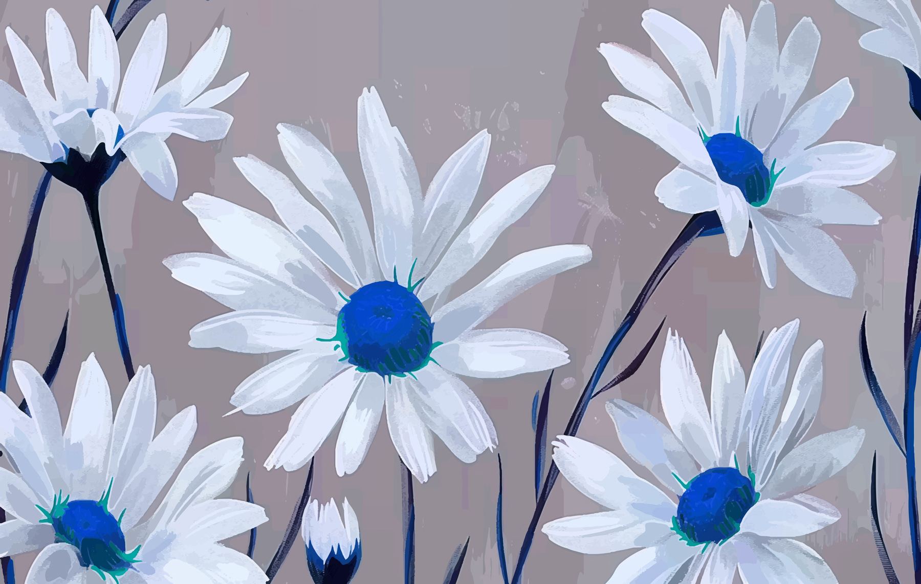 Bármelyik szobát vidám kertté varázsolhatja ezzel a “Falfestmény fehér virágok csoportja kék középponttal”. Képzeld el, hogy belépsz a helyiségedbe, és azonnal felemelő érzéssel tölt el, ahogy ezek a játékos virágok visszabámulnak rád, mindegyikük mókás kék középpontjával. Olyan, mintha egy beszédes zöld hüvelykujj lenne a faladon. Ezek a virágok tökéletesen feldobnak egy hangulatos zugot, vagy a nappaliban is megjelenhetnek, hiszen jó hangulatot és melegséget árasztanak. A barátaid azt hihetik, hogy egy titkos kertet rejtegetsz. És hé, ki ne szeretné a természet zümmögését a házban, különösen, ha nem kell öntözni?