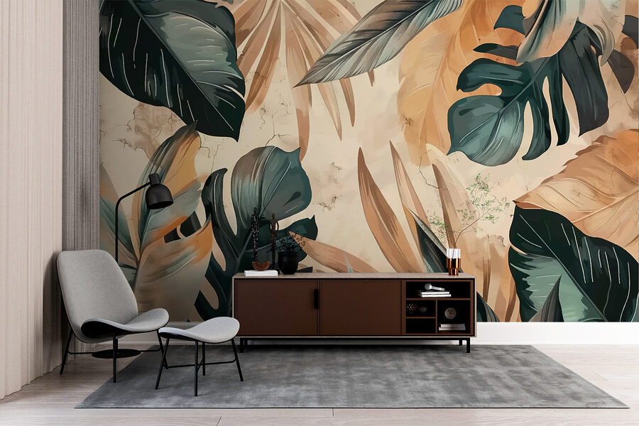 A textúrák a fa és az elöregedett falak kopott báját utánozzák, rusztikus, mégis vibráló hangulatot kölcsönözve. Ideális egy hangulatos olvasósarok vagy egy hűvös lógós hely kialakításához, ahol szinte hallani lehet a levelek zizegését és a trópusi madarak távoli hívását. Olyan, mint egy minivakáció a falakon – naptej nélkül.