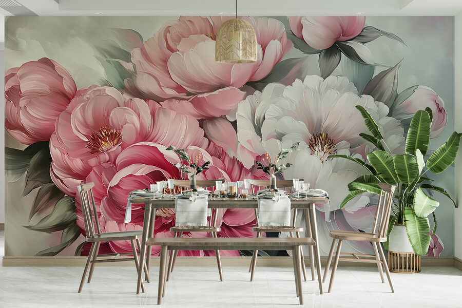 Bármelyik szobát virágzó paradicsommá varázsolhatja ezzel a vibráló falfestménnyel, amely egy gyönyörű virágcsoportot ábrázol buja levelek között. Képzelje el, hogy egy olyan térbe lép, ahol minden pillantás lágy szirmokat és finom árnyalatokat fedez fel, amelyek még a legunalmasabb napot is feldobják. Olyan, mintha saját kertje lenne, csak a bosszantó méhek nélkül! Akár egy hangulatos olvasósarokban, akár egy elegáns étkezőben, ez a falfestmény a béke és a szépség érzetét kelti. Szóval rajta, hagyja, hogy a virágos hangulat elárassza otthonát. Olyan frissítő, mint egy tavaszi reggel – az allergiát leszámítva.
