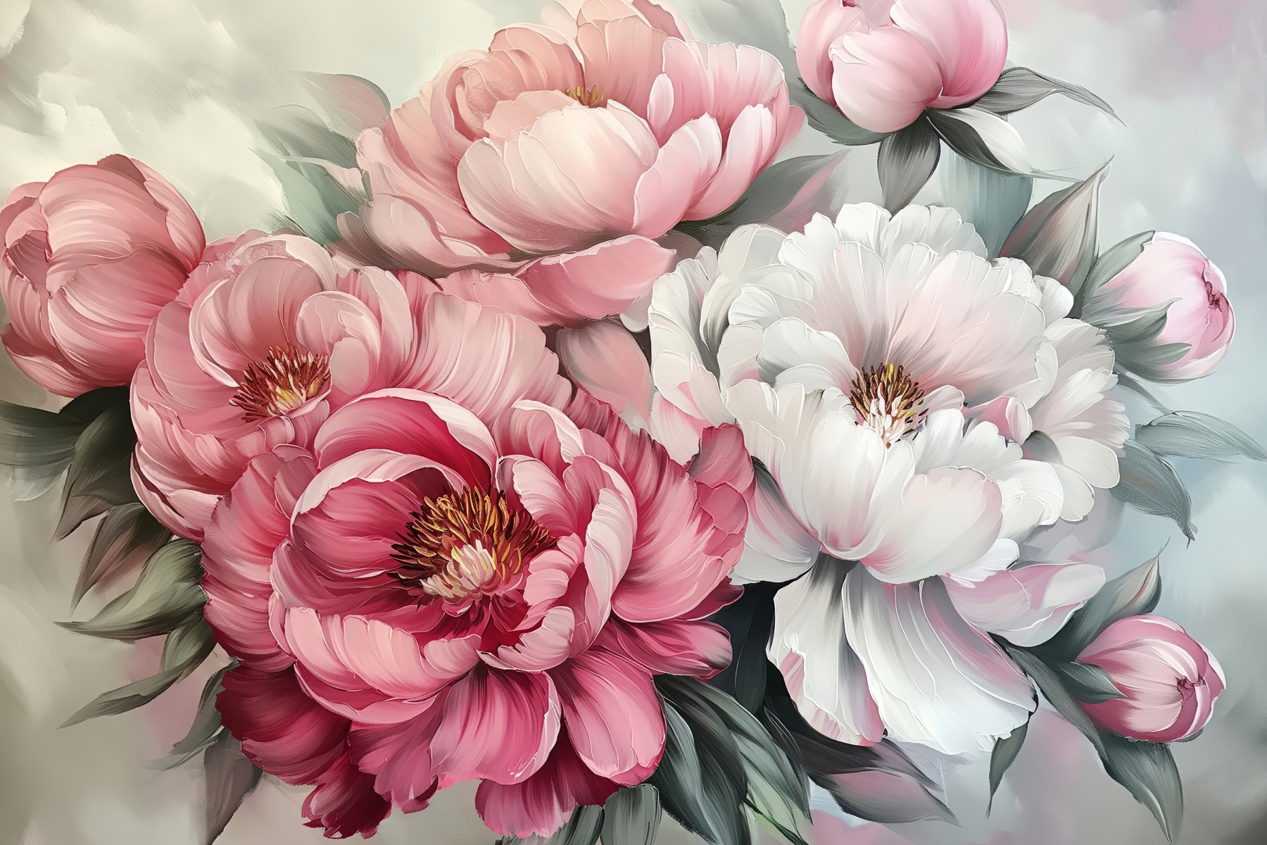 Bármelyik szobát virágzó paradicsommá varázsolhatja ezzel a vibráló falfestménnyel, amely egy gyönyörű virágcsoportot ábrázol buja levelek között. Képzelje el, hogy egy olyan térbe lép, ahol minden pillantás lágy szirmokat és finom árnyalatokat fedez fel, amelyek még a legunalmasabb napot is feldobják. Olyan, mintha saját kertje lenne, csak a bosszantó méhek nélkül! Akár egy hangulatos olvasósarokban, akár egy elegáns étkezőben, ez a falfestmény a béke és a szépség érzetét kelti. Szóval rajta, hagyja, hogy a virágos hangulat elárassza otthonát. Olyan frissítő, mint egy tavaszi reggel – az allergiát leszámítva.