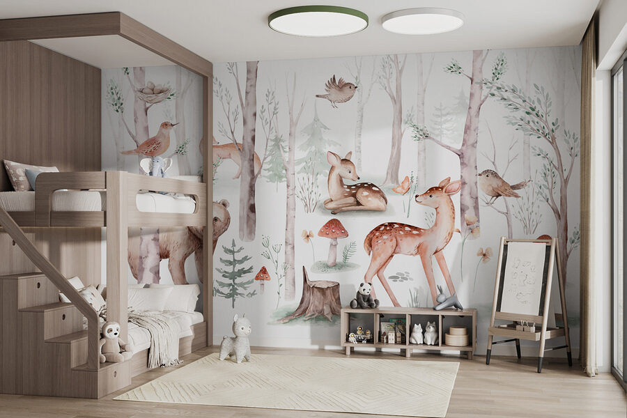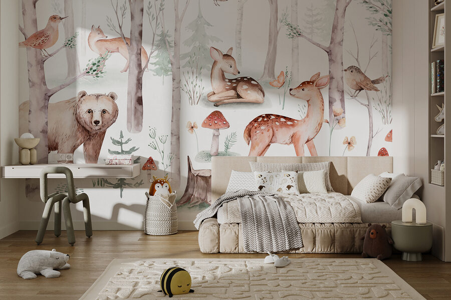 Merüljön el egy szeszélyes erdőben ezzel a bájos falfestménnyel. Képzelje el, hogy saját terében is van egy hangulatos erdei zug – barátságos szarvasokkal, kíváncsi rókákkal és halkan éneklő madarakkal. Olyan, mintha egy szelíd mesekönyvjelenetet látnál a faladon! Tökéletes a természet szerelmeseinek vagy bárkinek, akinek azonnali menekülésre van szüksége. Képzelje el, ahogy teát kortyolgatva, egy könyvvel a kezében, miközben ez a nyugodt környezet pihenésre hívja. Ki gondolta volna, hogy a faliképek ennyire… békések lehetnek? Alakítsa át szobáját egy nyugtató menedékké, ahol az erdő mindig virágzik.
