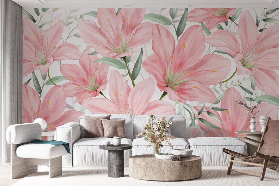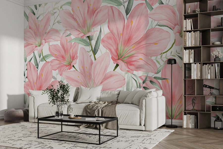 Képzelje el, hogy belép egy olyan szobába, ahol minden fal gyengéd üdvözlést suttog a lágy rózsaszínű, elegánsan egyensúlyozó, virágzó liliomokkal. Ez a falfestmény – nevezzük színfalnak – egy kis természetet hoz be a belső térbe, egy csipetnyi tündérmesével. Olyan, mintha kerti partit tartanál anélkül, hogy aggódnál az időjárás miatt! Tökéletes azok számára, akik szeretik a művészet és a természet keverékét, olyan, mintha magától az anyatermészettől kaptunk volna egy személyes ölelést. A vendégek még azt is megkérdezhetik, honnan szerezte ezt a lenyűgöző “műalkotást” – Ön pedig csak mosolyog, bólogat tudálékosan, és hagyja, hogy a liliomok beszéljenek.
