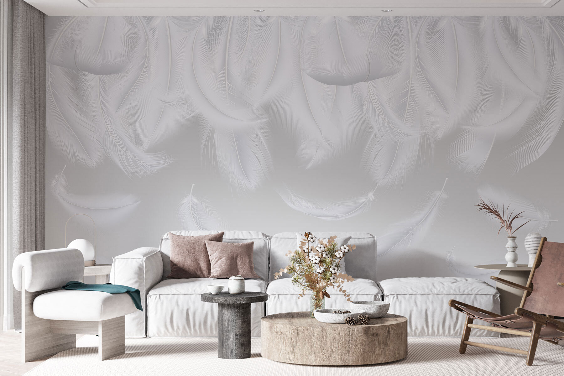 Alakítson át bármilyen helyiséget nyugodt szentéllyé ezzel a lenyűgöző falfestménnyel, amelyen fehér tollak lágyan hullanak alá. Olyan, mintha egy álomszerű felhőbe sétálnál, ahol minden toll a nyugalom és a csend titkait suttogja. Képzelje el, hogy egy könyvvel bújik össze, körülvéve ezekkel a finom részletekkel, és azonnal megnyugszik. A lágy minták eleganciát kölcsönöznek anélkül, hogy túlságosan feltűnőek lennének. És hé, ha egy békés menekülésről álmodozol, ez a falfestmény teljesen eléri azt. Tökéletes hálószobába vagy olvasósarokba, ez tiszta vizuális költészet – ki ne szeretné ezt?