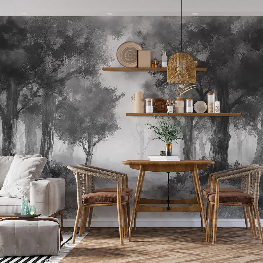 A “Fák csoportja a ködös erdőben” falfestmény olyan, mintha egy álomba lépnénk. Képzelje el: felébred egy lusta vasárnapon, kávéval a kezében, és ott van – a nappalija ködös erdővé változik. A lágy köd ősöreg fák köré burkolózik, meghitt, mégis kalandos érzést keltve benned. A legjobb rész? Még csak ki sem kellett mozdulnod a házból. Tökéletes azokhoz a pillanatokhoz, amikor úgy akarsz elmenekülni, hogy nem mész sehova. Ez a falfestmény ideális arra, hogy varázslatos és titokzatos hangulatot kölcsönözzön a helyiségednek, és bármelyik falat bájos erdei menedékké varázsolja. Képzelje csak el, ahogy könyvet olvas, az új, álomszép erdei zugában. Olyan érzés, mint egy visszavonulás, nem igaz?