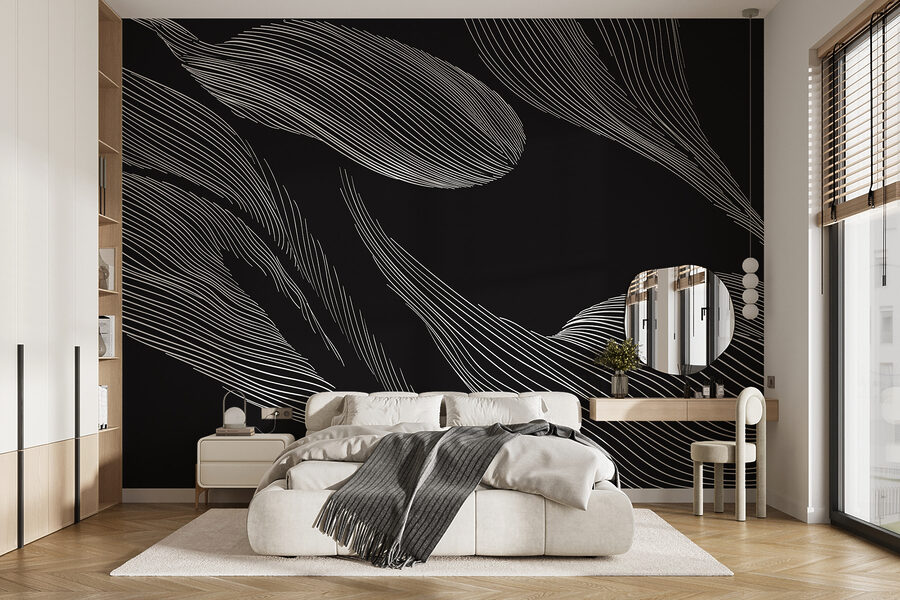 Alakítsa át terét ezzel a lenyűgöző fekete-fehér falfestménnyel, amely a falon táncol. Olyan, mintha a természetet hoznád be a házba, a bogarak nélkül – bónusz pontok! Az áramló vonalak a mozgás érzetét keltik, és a leveleken zizegő lágy szellőre emlékeztetnek. Tökéletes egy hangulatos olvasósarokba vagy egy modern nappaliba, és biztosan beszélgetéseket, sőt, talán még egy kis álmodozást is kivált. Képzelje el, ahogy egy csésze teával összegömbölyödik, miközben e műalkotás megnyugtató hangulata veszi körül. Ki gondolta volna, hogy egy falfestmény egész hangulatot varázsolhat egy falból?