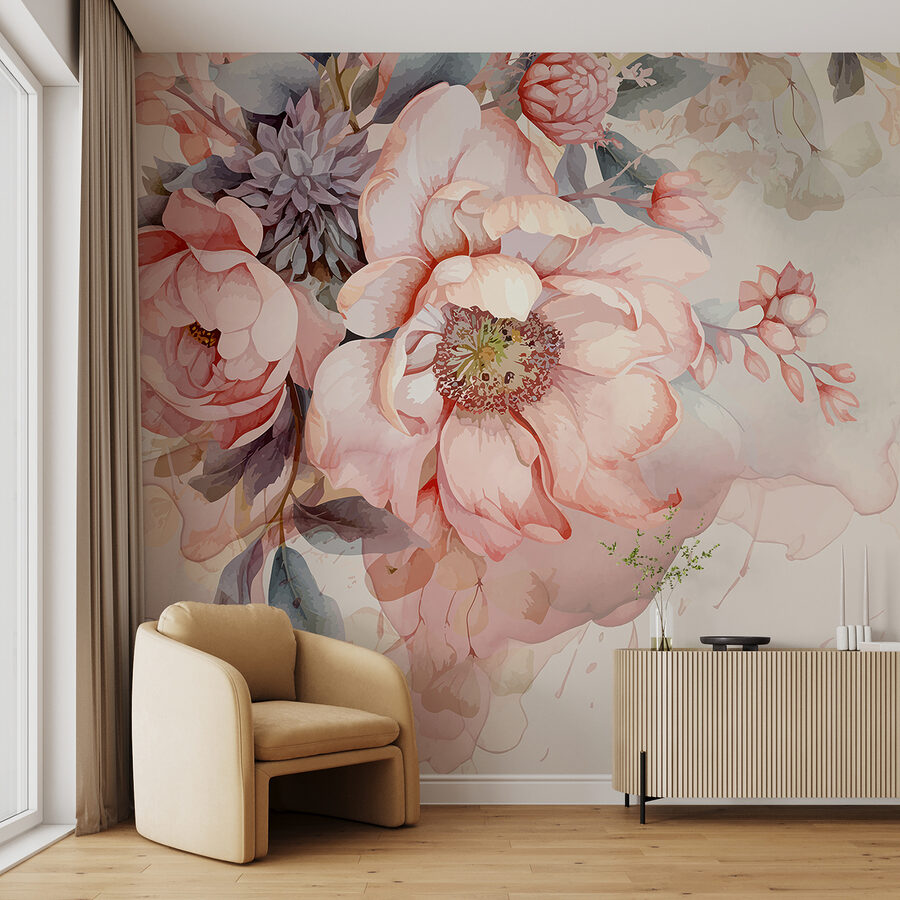 Képzelje el, hogy átalakítja terét ezzel a lenyűgöző falfestménnyel: “Akvarellvirágok lágy pasztellszínekben”. Olyan, mintha egy nyugodt kertet hoznál a szobádba. A rózsaszín, a krém és a zöld gyengéd árnyalatai nyugtató, szinte álomszerű hangulatot idéznek. Tökéletes a virágok szerelmeseinek, vagy bárkinek, aki a természetet szeretné megidézni anélkül, hogy túl merész lenne.