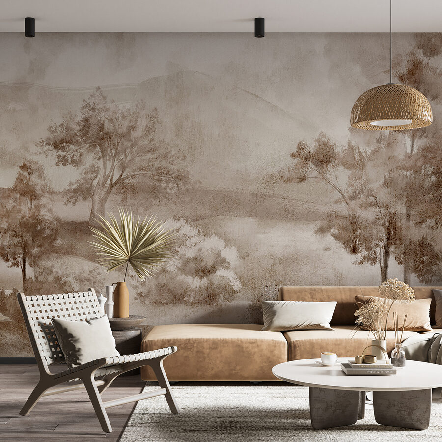 Sziasztok! Szerettél volna valaha is egy kis álomszép táj varázslatot vinni a nappalidba vagy a hálószobádba? Nézd meg a “Falfestmény tájkép fákkal és bokrokkal”. Ez a lágy színek és földszínek gyönyörű keveréke, amely bármilyen teret egy kicsit nyugodtabbá tesz. Mint egy gyengéd akvarellfestmény, ez a falfestmény egy buja jelenetet örökít meg fákkal és bokrokkal, szinte mintha egy békés rétre pillantana.