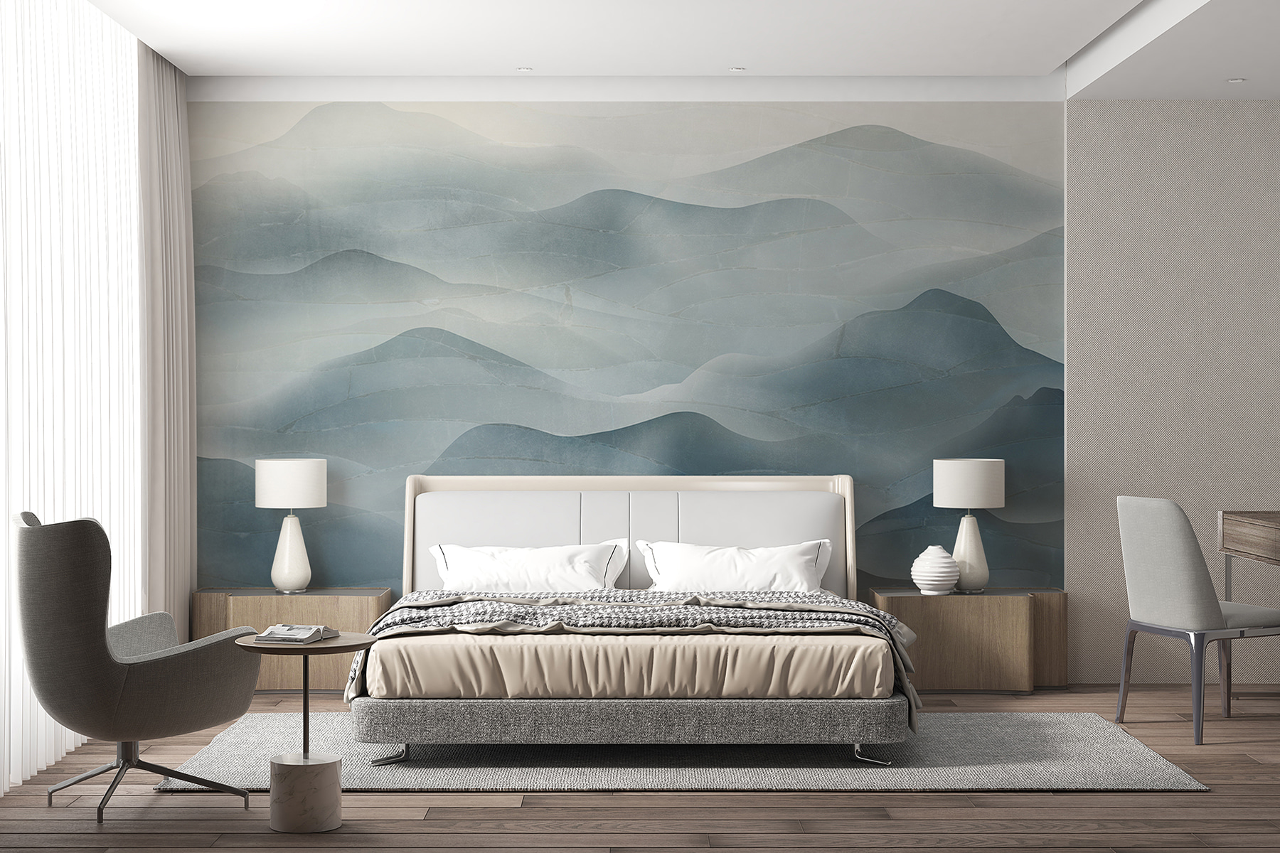Alakítsa át terét a “Serene Blue Waves” (Derűs kék hullámok) elragadó falfestményével. Képzelje el: lágy, hullámzó kék hullámok, amelyek békés harmóniában táncolnak egymással. Olyan, mintha az óceán nyugalmának egy darabkáját hoznád be a nappalidba. Képzelje el, hogy egy jó könyvvel kucorog, miközben a falfestmény lágy ívei nyugtató hátteret teremtenek, amely elolvasztja a nap káoszát. Tökéletes egy hangulatos olvasósarokba vagy egy nyugodt hálószobába, minden pillantásával pihenést sugároz. Ez a freskó köteteket beszél – komolyan, valószínűleg verseket is tudna írni. Ez több mint egyszerű dekoráció; ez egy élmény. Hagyja, hogy a finom hullámok átjárják, és bármelyik falat nyugtató meneküléssé varázsolja.