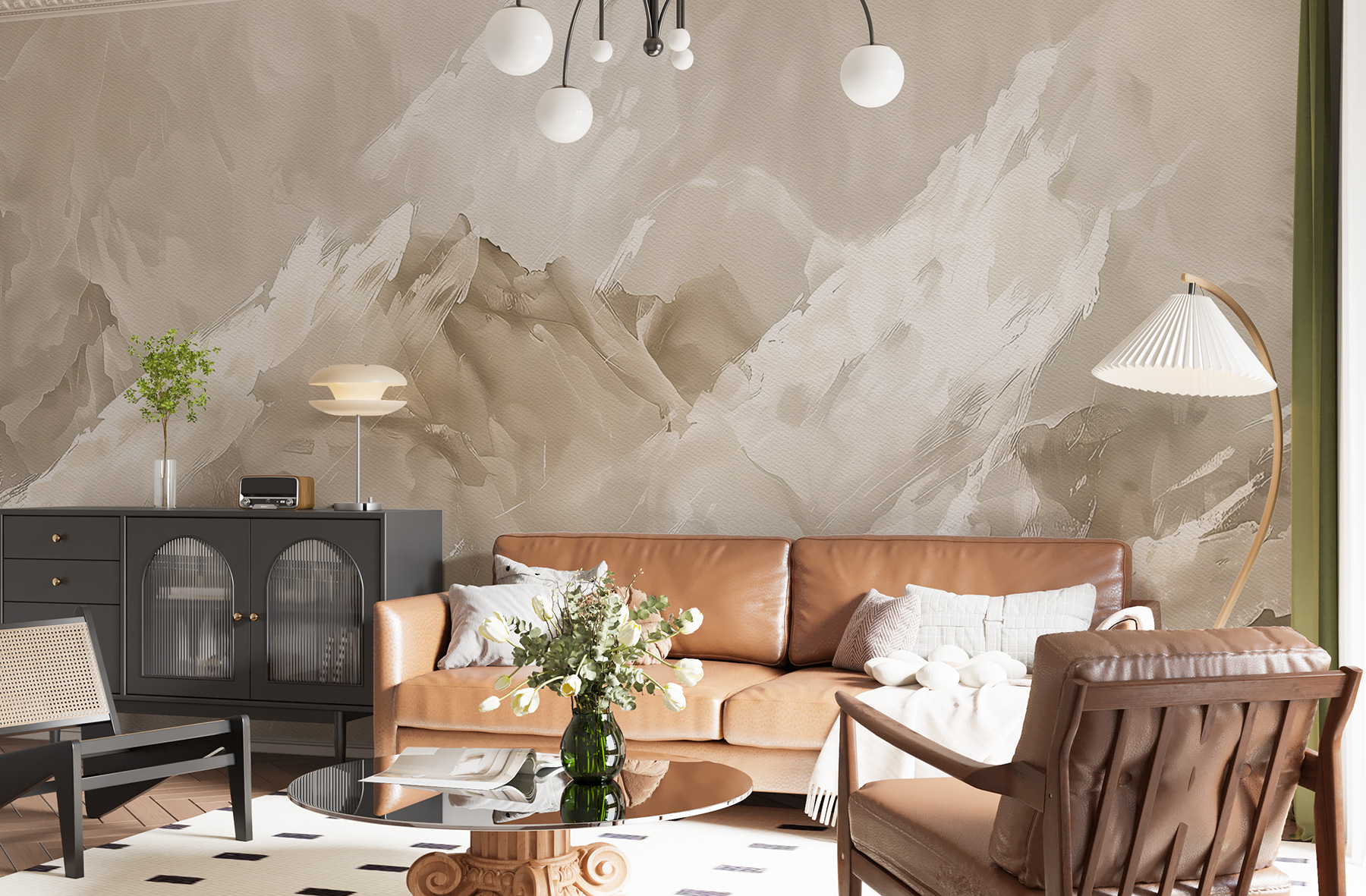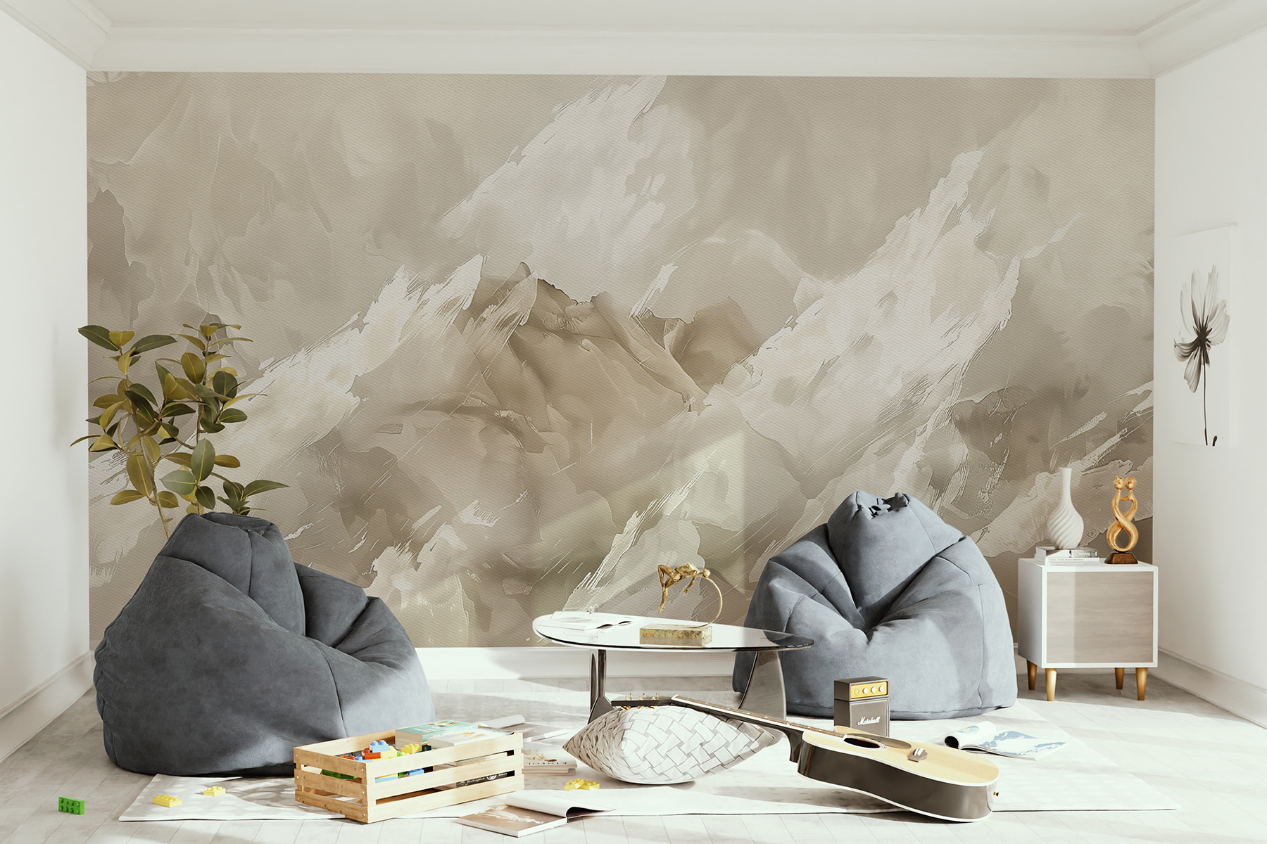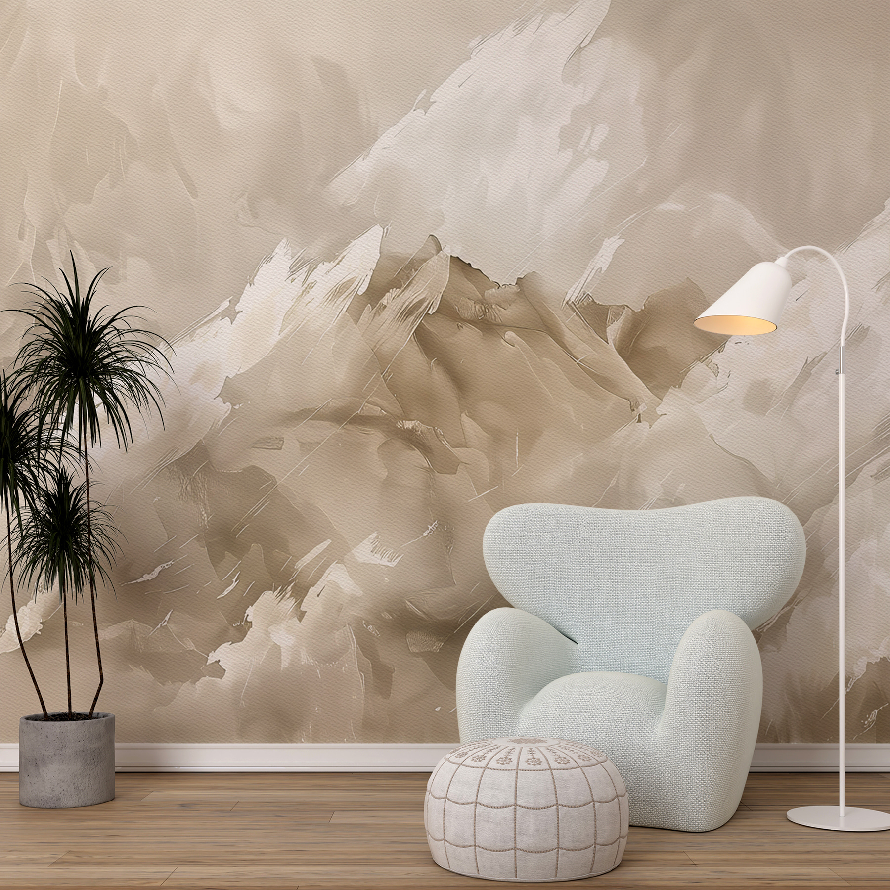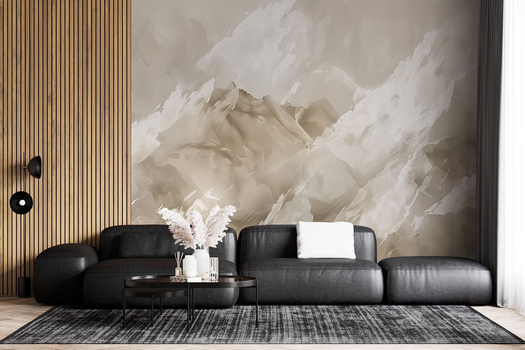 Remek beszélgetésindító is – a vendégek a faladon lévő békés, szinte absztrakt jelenetről fognak kérdezősködni. Van valami az ecsetvonásokban, ami arra késztet, hogy tovább bámészkodj, és minden alkalommal új formákat és mintákat találj. Ráadásul elég sokoldalú ahhoz, hogy szinte bármilyen térben megállja a helyét – akár a nappalit, akár a hálószobát, akár egy elegáns otthoni irodát szeretne feldobni. Olyan, mintha azonnali frissítést kapna a falakon anélkül, hogy egy ecsetet is megemelne!