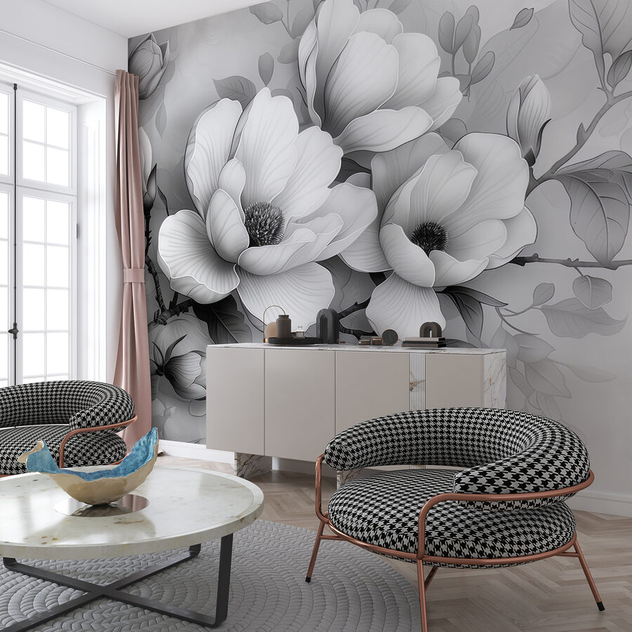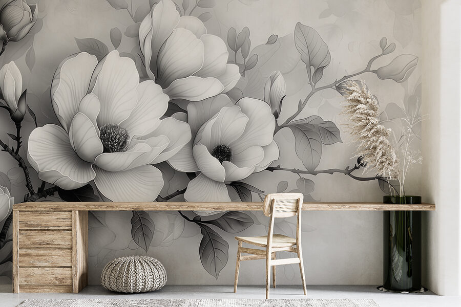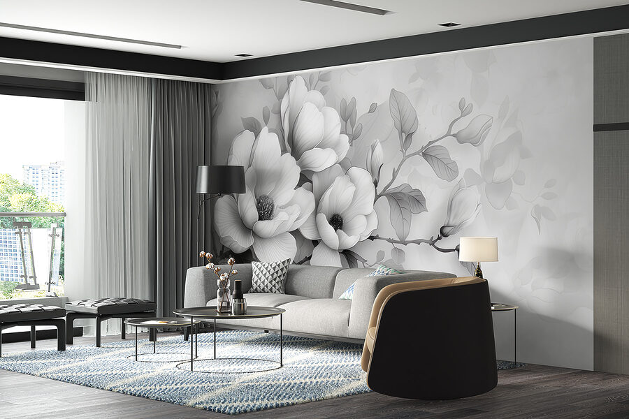 Alakítson át bármilyen teret ezzel a lenyűgöző falfestménnyel: “Monokróm virágzás nyugodt eleganciában”. Képzelj el egy békés reggelt, beáramló fényt, és ezeket a finom virágokat, amelyek lágyan díszítik a faladat. A merész, mégis szelíd dizájn könnyedén egyensúlyoz a kifinomultság és a természet szépsége között. Olyan, mintha egy nyugodt kertet hívna meg otthonába, amely tökéletes az álmodozáshoz vagy a meghitt beszélgetésekhez. Legyen szó egy elegáns nappaliról vagy egy csendes hálószobai sarokról, ez a falfestmény eleganciát suttog anélkül, hogy kiabálna. Ez egy bájos érintés, amely megállásra, lélegzetvételre és az egyszerűség művészetének értékelésére késztet. Képzelje csak el, ahogy a közelben kávét szürcsölget, és érzi, ahogy a nyugodt hangulat átjárja.