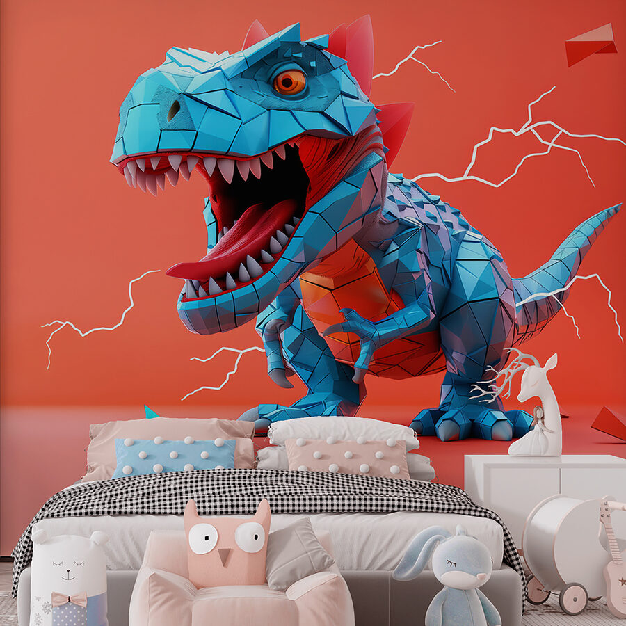 A feltűnő piros háttér könnyedén kiemeli a kék geometrikus dinoszauruszt. Szinte mintha hallanád az üvöltését! Nagyszerű, hogy mélységet és izgalmat adjon bármilyen térnek, legyen az egy merész nappali, egy kalandos gyerekszoba vagy egy furcsa iroda.