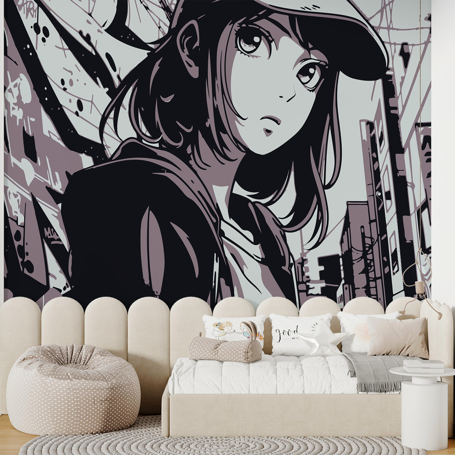 Képzelje el ezt: otthonának egy hangulatos sarkát, amelyet egy elegáns kalapos nőt ábrázoló lenyűgöző freskó kelt életre. Olyan városias hangulata van, mintha a nő egy menő képregényből lépett volna ki. A finom színek könnyedén keverednek, és nyugodt, mégis érdekes hangulatot teremtenek. Képzelje el, ahogy vendégei észreveszik, és felcsillan a szemük – ki ne szeretné, ha egy kis titokzatosság kerül a helyiségébe? Tökéletes beszélgetések indítására vagy csak álmodozásra egy esős napon. A falfestmény varázsa? Tagadhatatlan, mint egy kedvenc könyv, amelyet sosem unszol el olvasni.