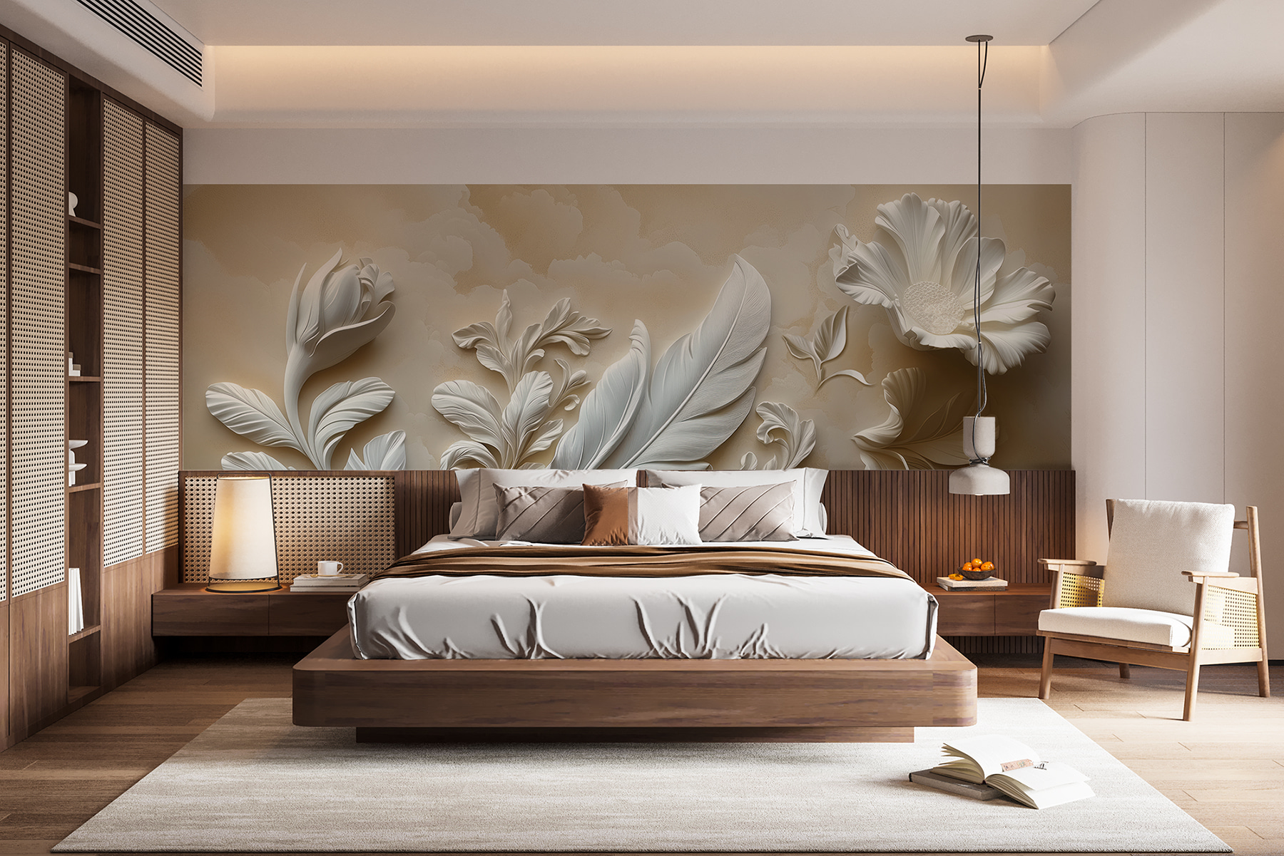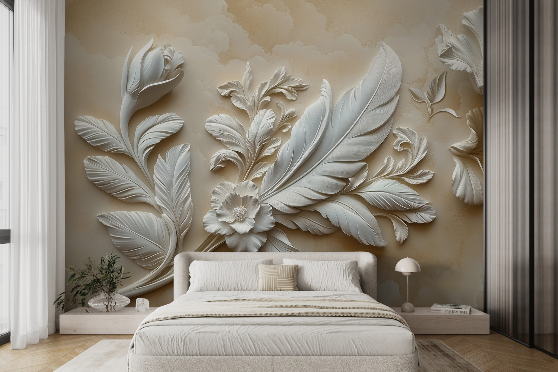 Alakítsa át terét ezzel a lenyűgöző falfestménnyel, amely elegáns, fehér virágmintát ábrázol. Képzelje el, hogy belép egy olyan szobába, ahol lágy szirmok és kecses levelek veszik körül, mint egy titkos kertben, csak még jobb, mert beltérben van. Tökéletes arra, hogy egy csipetnyi nyugalmat és frissességet adjon bármely területnek, legyen az egy hangulatos nappali vagy egy megnyugtató hálószoba. A finom részletek felfedezésre invitálják a szemet, és álmodozásra késztetik a napsütéses sétákról a természetben. Már a képzelet is megnyugtatja az embert. Ráadásul olyan egyszerű módja annak, hogy a falak beszéljenek!