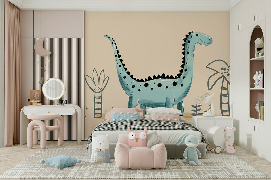Ismerd meg az új falitársadat – ez a vidám dinoszaurusz falfestmény, w01357v1, a Dinoszaurusz falfestmények és a Népszerű falfestmények kollekció része. Hát nem imádnivaló? Ez a barátságos dinó garantáltan mosolyt csal mindenki arcára, aki belép a szobába. Lágy, játékos színeivel és rajzfilmszerű bájával tökéletes arra, hogy beindítsa a kicsik fantáziáját – vagy csak egy kis szeszélyt adjon bármelyik helyiségnek.