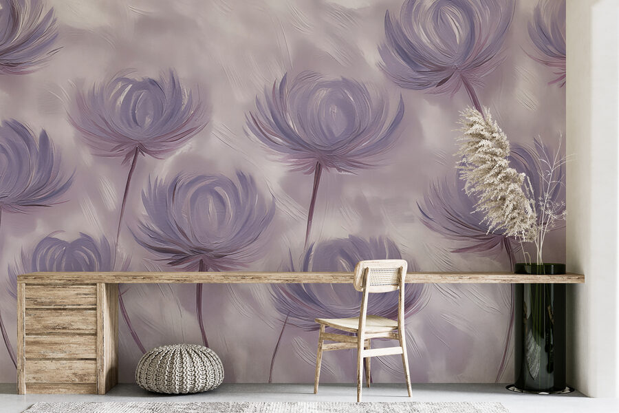 Nézze meg ezt a lenyűgöző falfestményt, amelynek találó neve “Fotótapéta w01375”. Olyan, mintha egy nappali álom kelne életre, nem igaz? Tökéletes mindenkinek, aki szereti az egyedi dekorációt egy kis természettel és egy csipetnyi akvarell varázslattal. Képzeld el: lágy, szeszélyes virágok a finom lila árnyalataiban, amelyek szinte úgy ringatóznak, mintha titkokat suttognának egymásnak.