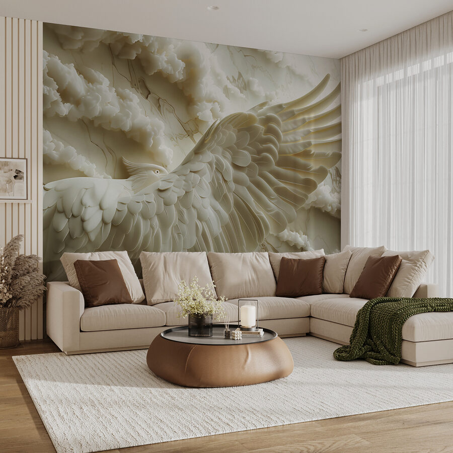 Bármely szobát alakítson át nyugodt meneküléssé a “Falfestmények Fehér madár kiterjesztett szárnyakkal” című faliképpel. Ez a lenyűgöző darab egy madár kecsességét örökíti meg repülés közben, lágy, áramló felhőkkel körülvéve. Képzelje csak el, hogy belép a helyiségébe, és azonnal nyugalmat érez, mintha a nyugodt égboltot nézné.