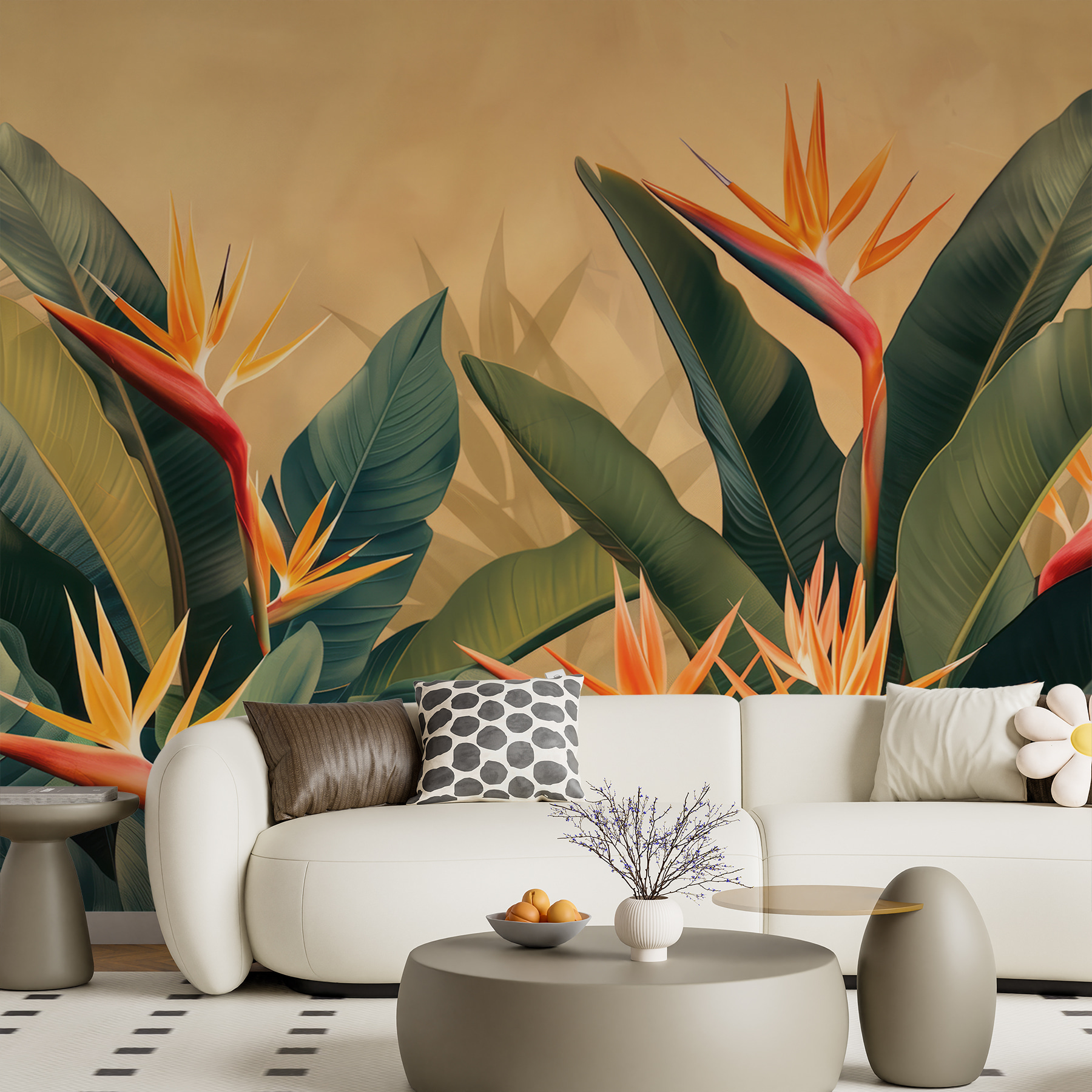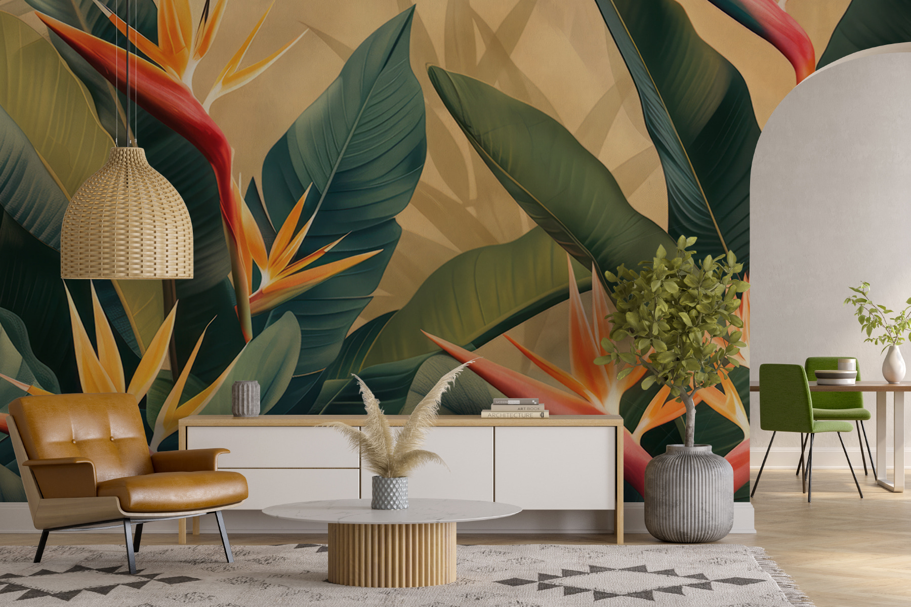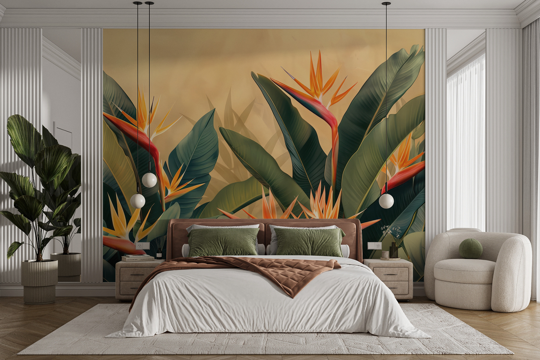 Változtasson bármelyik szobát trópusi paradicsommá ezzel a lenyűgöző falfestménnyel, amely élénk paradicsommadár növényeket ábrázol. A gazdag zöldek és tüzes narancsok élénk hátteret teremtenek, azonnal feldobva a hangulatot. Képzelje el, hogy nappalijába lépve úgy érzi, mintha egy napsütötte trópusi kiránduláson lenne. Mintha a természet egy szeletét hozná be a lakásba – tökéletes a hangulatos délutánokra egy könyvvel vagy esetleg egy pimasz koktéllal a kezében. Ráadásul remek beszélgetésindító. A vendégek kérdezgetni fogják, honnan származik ez a mesés falfestmény, te pedig mosolyogva mondhatod, hogy ez a titka az elegáns menekülésednek!