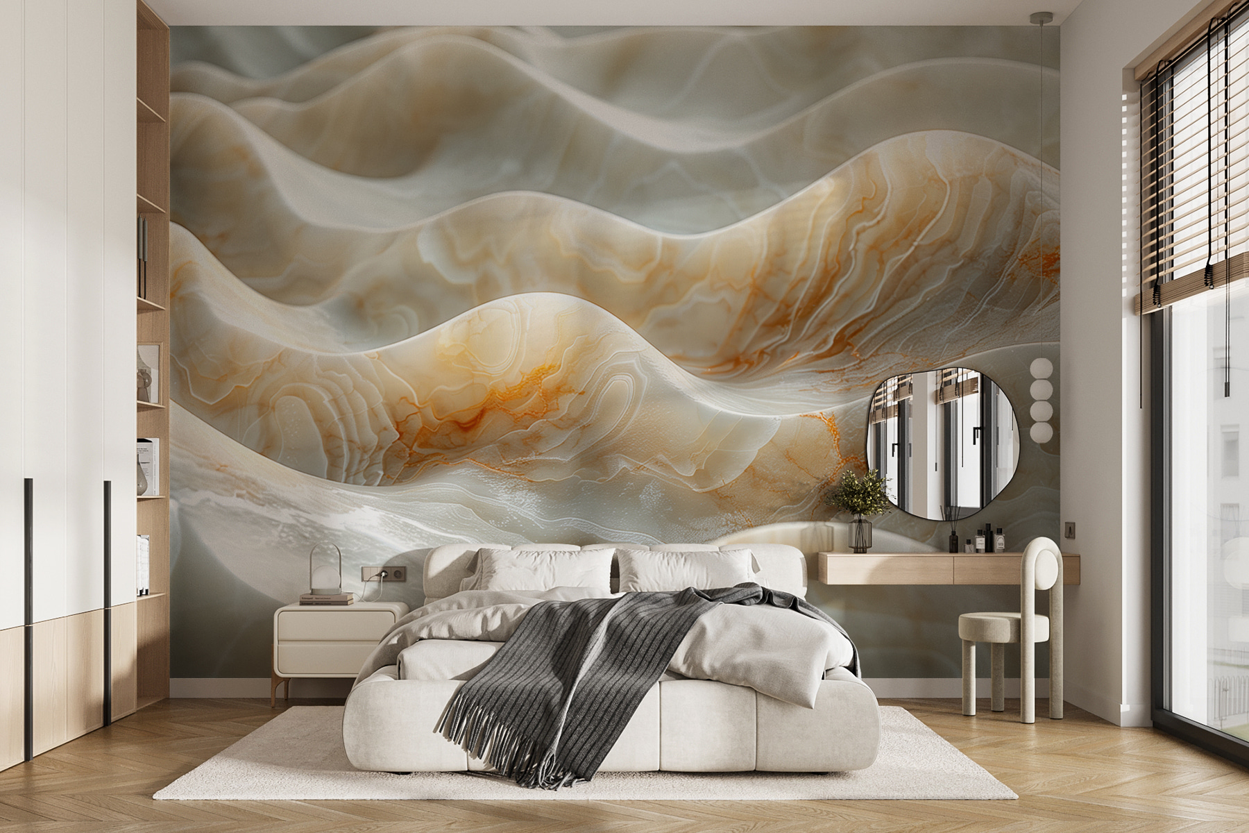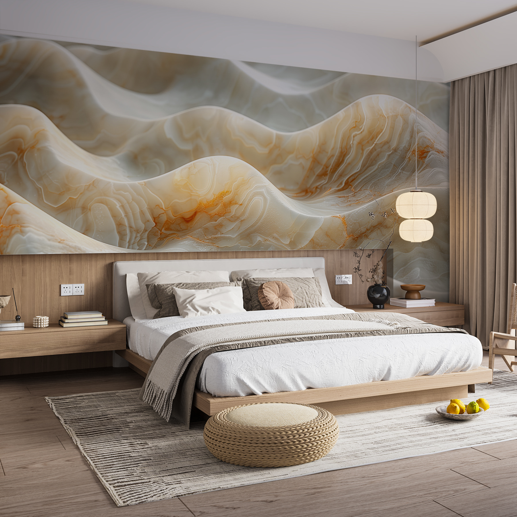Képzelje el, hogy márványhullámok nyugodt tengerébe merül – minden hullámhegy és hullámvölgy a krémes fehér és a meleg borostyánszínű örvények lenyűgöző keveréke. Ez a falfestmény, w01488, nem csak egy műalkotás – hanem egy kijelentés. Több kategóriába is beletartozik: Absztrakt, kortárs, márvány, kő és még 3D is… beszéljünk a sokoldalúságról! Húzza le és ragassza fel, és hirtelen elegáns, spa-szerű hangulatot kap a szobája, amely egyszerre földhözragadt és modern. Tökéletes egy hétköznapi fal feldobásához vagy egy pihentető zug kialakításához. Egy pillantás az áramló mintákra, és mintha a teret nyugodt, szinte zen-szerű energia járná át – valószínűleg mindannyiunknak jól jönne, nem igaz? Akár a drámaiság, akár a meghitt nyugalom jegyében tervezel, ez a falfestmény mindenre felkészít. Komolyan, ki gondolta volna, hogy a tapéta lehet ilyen mély?