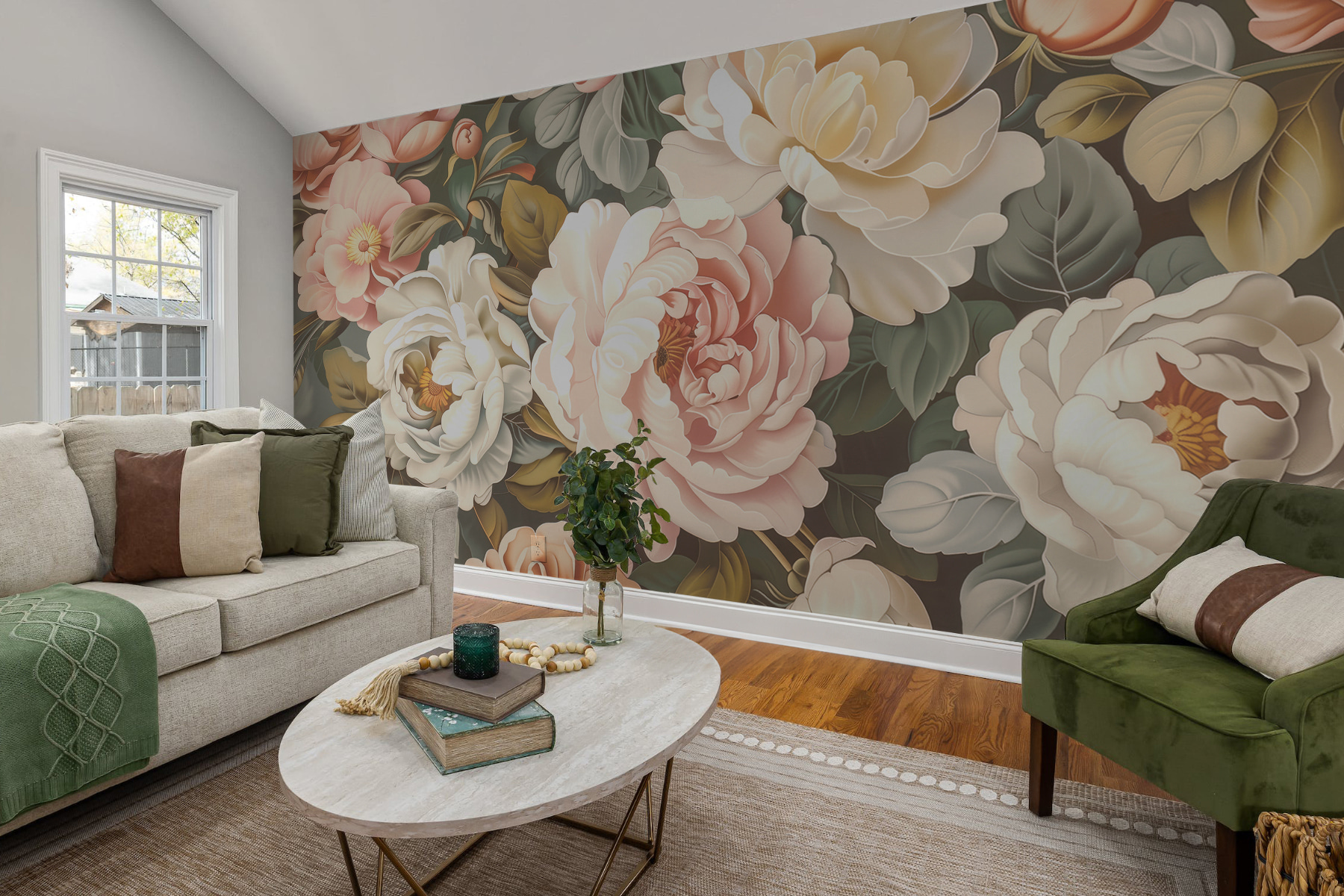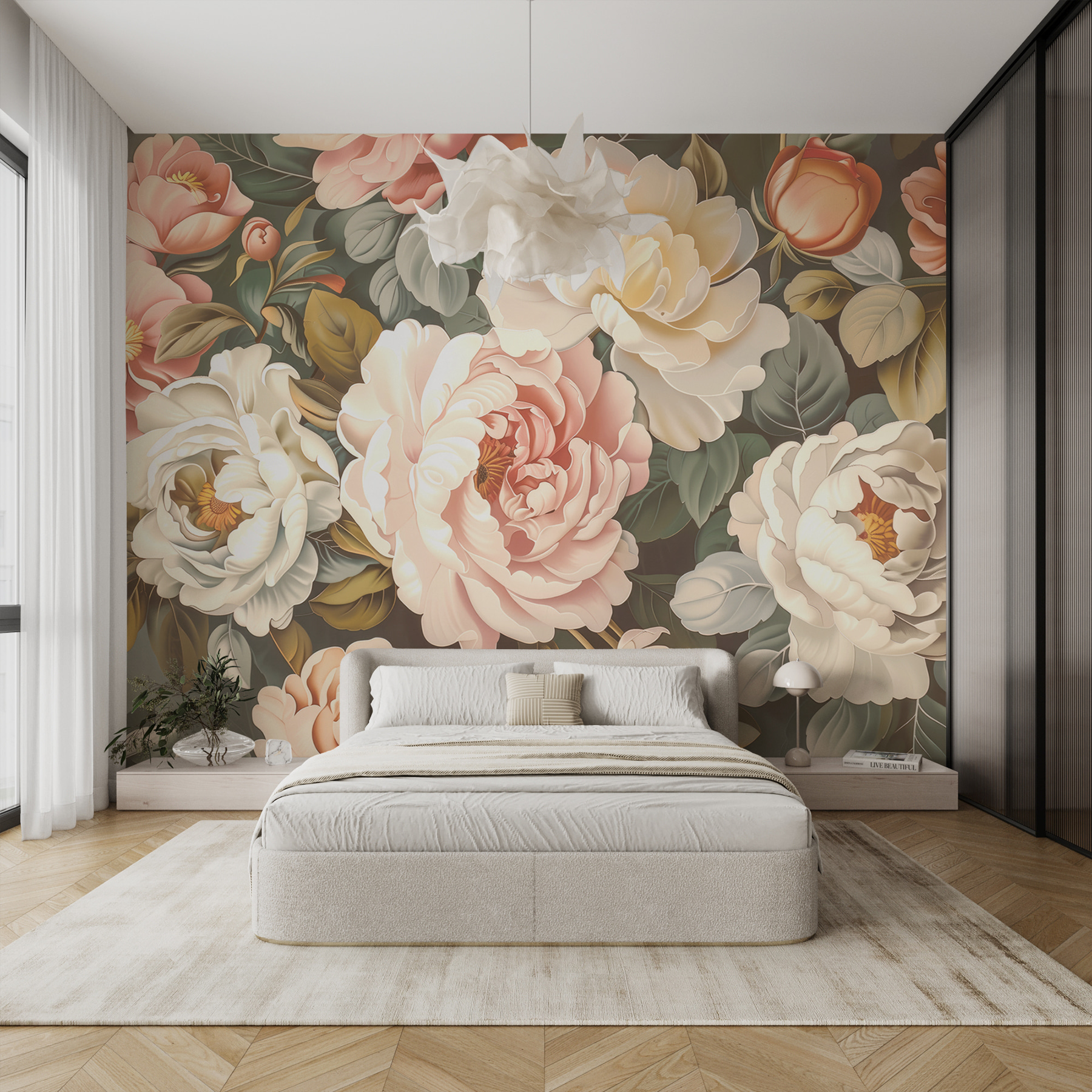 Alakítson át bármilyen helyiséget az “Időtlen szépség örök virágával”. Ez a falfestmény nem csupán műalkotás; ez egy botanikai menekülés. Képzelje el, hogy minden egyes alkalommal, amikor elsétál mellette, egy buja kertbe lép. Azok a pompás bazsarózsák, amelyek felpúposodtak és színpompásak, szinte úgy érzed, mintha beszélgetni szeretnének veled. Olyan, mint egy virágos ölelés a falakon, amely melegséget és örömet hoz. Ideális egy hangulatos kávézósarokba vagy egy napsütötte nappaliba, ez a falfestmény suttogva invitál a pihenésre és a lélegzetvételre. Ki ne vágyna ilyen hangulatra? Ez nem csak dekoráció; ez egy élmény, amely csak arra vár, hogy megtörténjen.