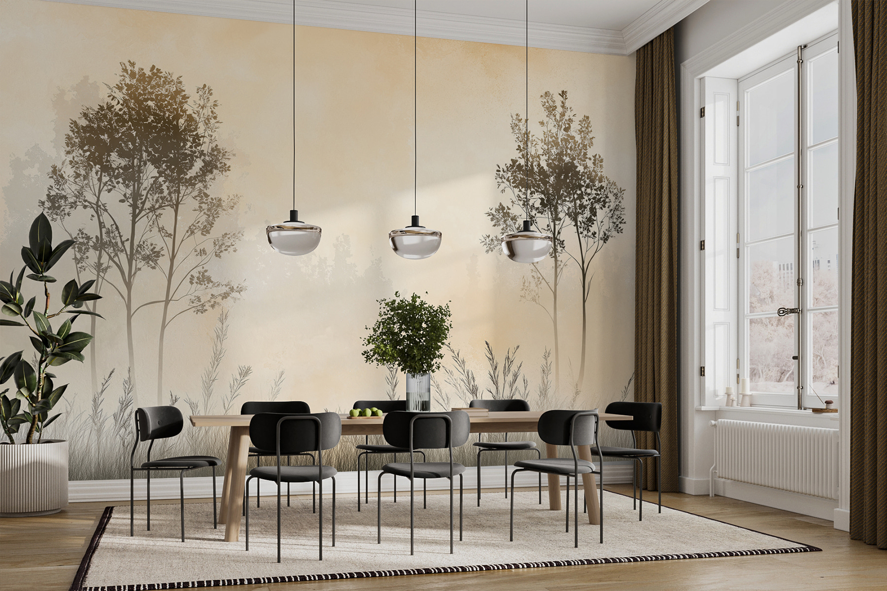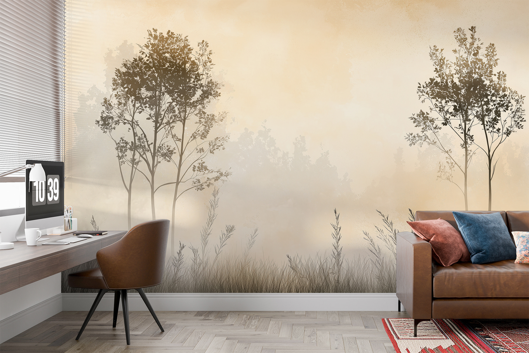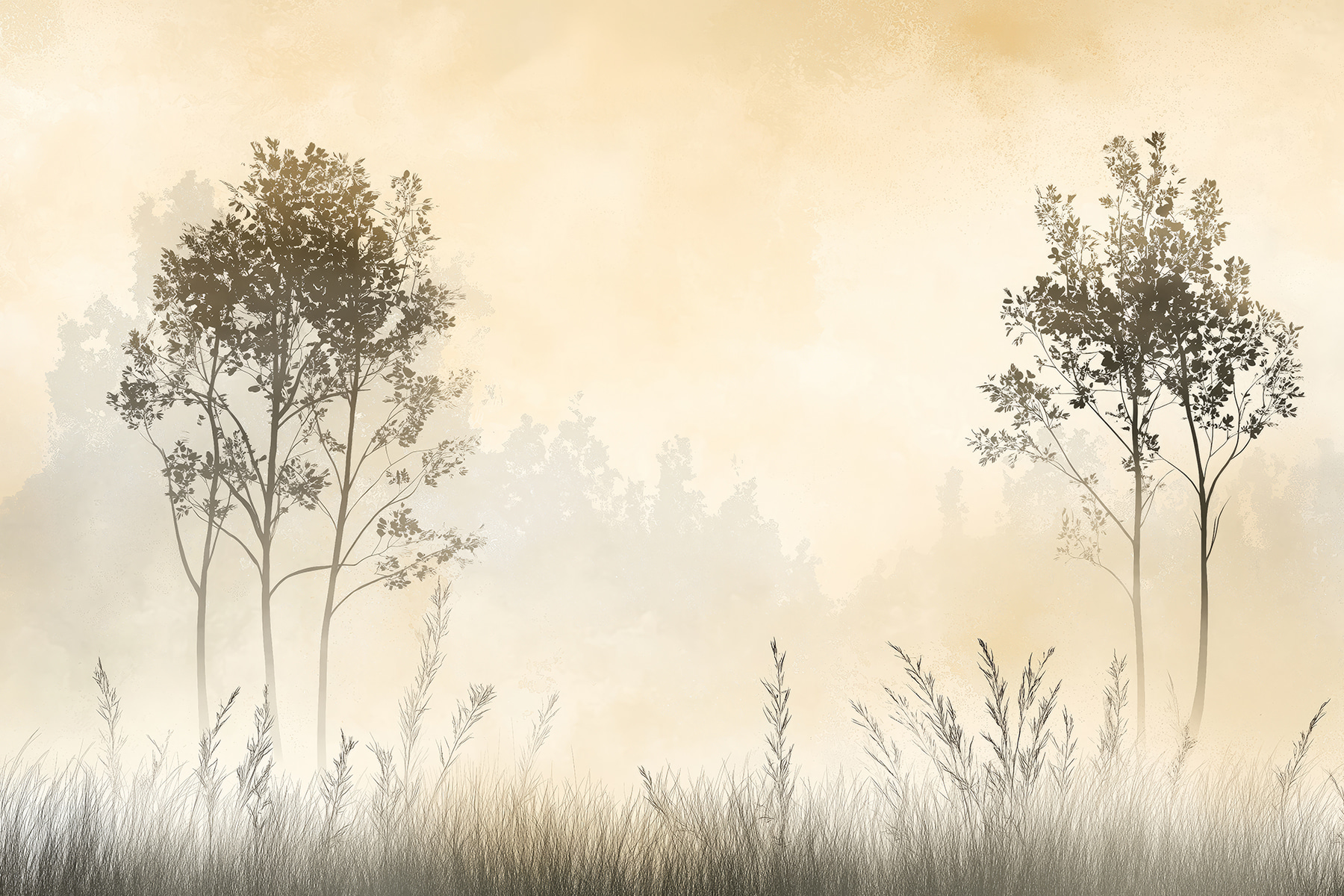 Képzelje el, hogy erre az álomszerű freskóra ébred – “Ködös táj fákkal és fűvel”. Olyan, mintha egy nyugodt erdőbe lépnél a nappalidból. Ismered a csendes reggelek nyugtató hangulatát? Ez tökéletesen megragadja. A lágy köd kecses fákat ölel körbe, és a fű árnyalatai is átsütnek rajta. Tökéletes ahhoz, hogy egy sima falat a saját békés menedékeddé alakítsd.