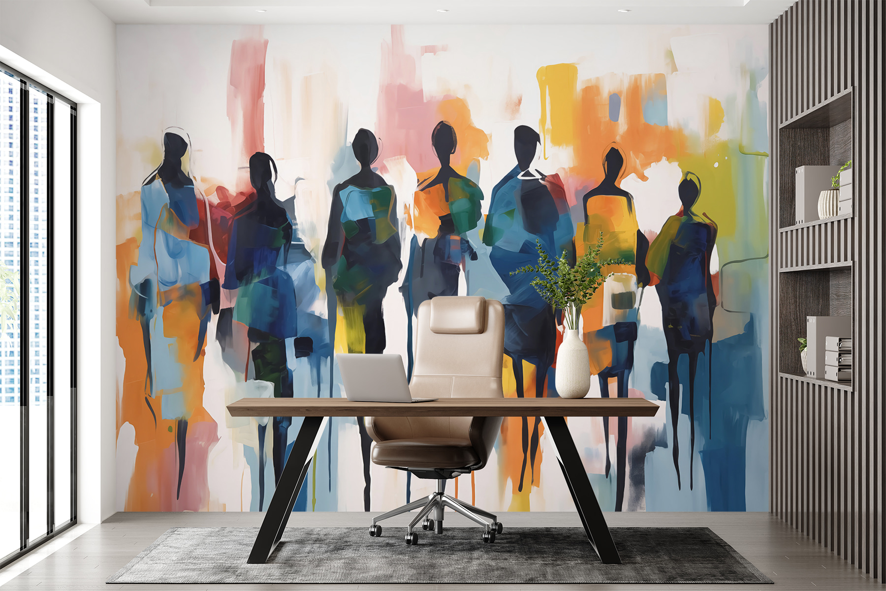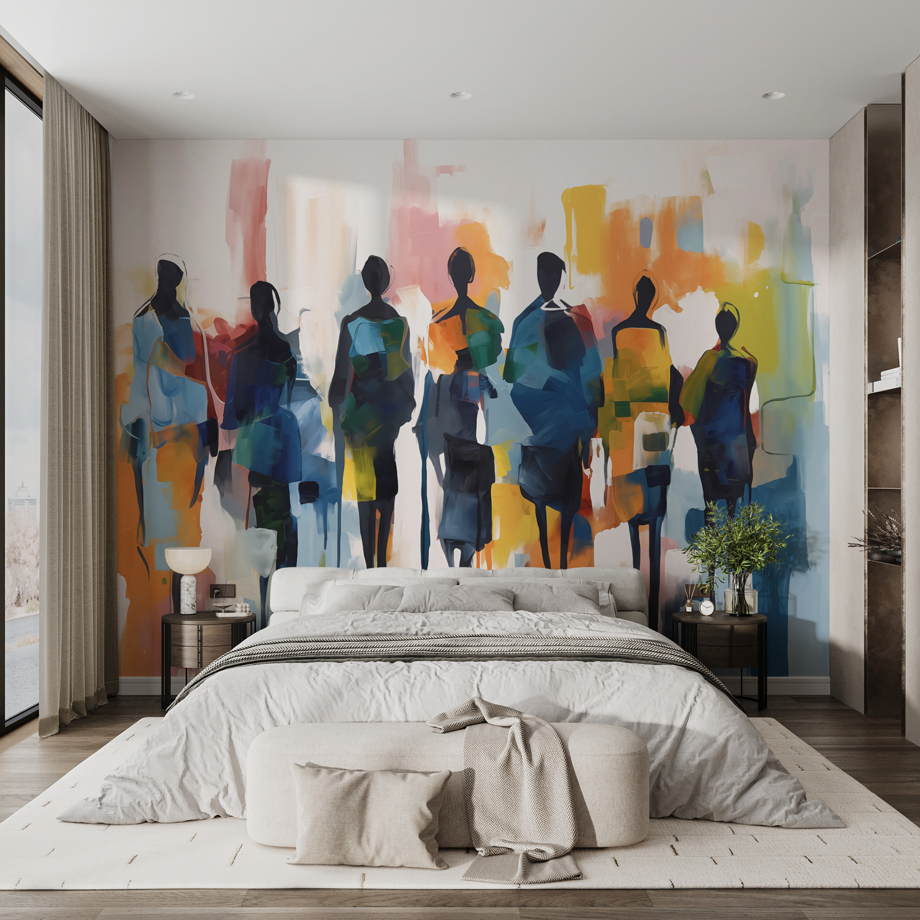 Gondoltad már, hogy a faladnak szüksége van egy kis kalandra? Lépjen be a “Sétáló emberek csoportja” falfestménybe – a színek és formák művészi keveréke, amely az élet nyüzsgését és nyüzsgését egy álomszerű csavarral örökíti meg. Olyan, mintha egy felvonulás lenne a nappalidban! Képzelje el, ahogy ott ül, kávét szürcsölgetve, és érzi az energiát, ahogy ezek az absztrakt figurák végigsétálnak a falon. Olyanok, mint a régi barátok, furcsán megnyugtatóak, mégis tele vannak történetekkel. Tökéletes azok számára, akik szeretik a káosz és a nyugalom keverékét. Ráadásul ez egy biztos beszélgetésindító – a vendégek talán elnevezik az egyes figurákat!
