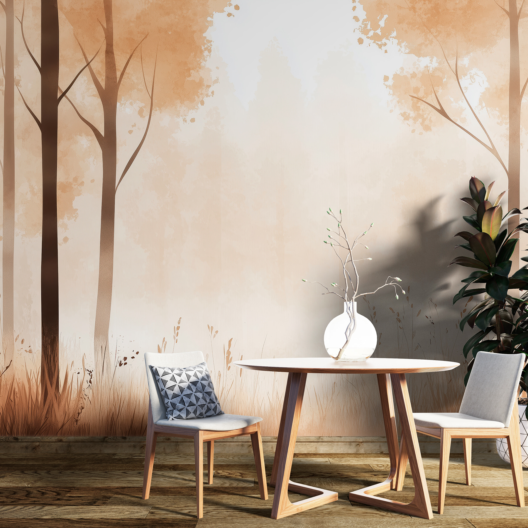 Képzelje el, hogy belép egy olyan szobába, ahol a nyüzsgés és a nyüzsgés elhalványul – csak Ön és egy nyugodt, ködös erdő van. Ez a falfestmény ezt a nyugodt hangulatot hozza haza. A fák és a füvek titkokat suttognak a ködön keresztül, nyugalomba burkolva a teret. Tökéletes a természet szerelmeseinek vagy bárkinek, aki belefáradt a sima falak bámulásába. Olyan, mint egy természetes menekülési kabin – anélkül, hogy elhagynád a kanapédat! Ráadásul biztosan kivált néhány “hű, ezt meg honnan szerezted?” pillanatot a látogatókból. Lélegezzen nyugodtan, és hagyja, hogy ez az erdő megtegye a hatását.
