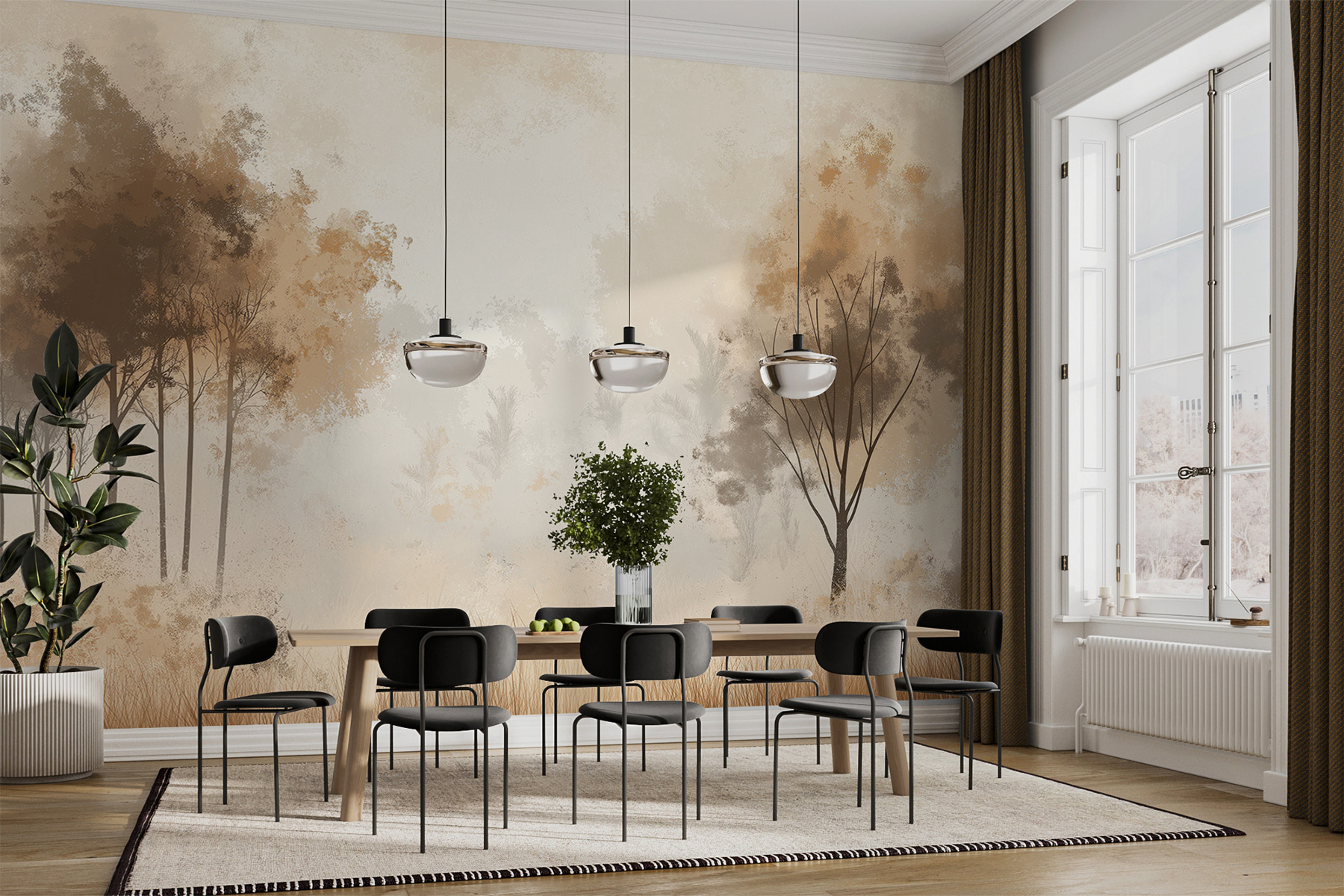 Itt van valami különleges: egy falfestmény, amely egy ködös erdőt ábrázol – fák nyújtózkodnak, köd gomolyog körülöttük, a fű lágyan ringatózik. Tökéletes ahhoz, hogy bármelyik szobát suttogó erdei menedékké varázsolja. Olyan, mintha egy tündérmesébe csöppentél volna, csak sajnos a beszélő állatok nélkül. Reggelente, kávéval a kezedben, szinte már a harmat illatát is érezheted. A természet szerelmesei, az üres fal épp most találta meg a hivatását. Képzeld el, ahogy a vendégek besétálnak, leesik az álluk, és azt kérdezik: “Hol van Narnia?”. Ez egy hangulat, nem csak egy falfestmény.