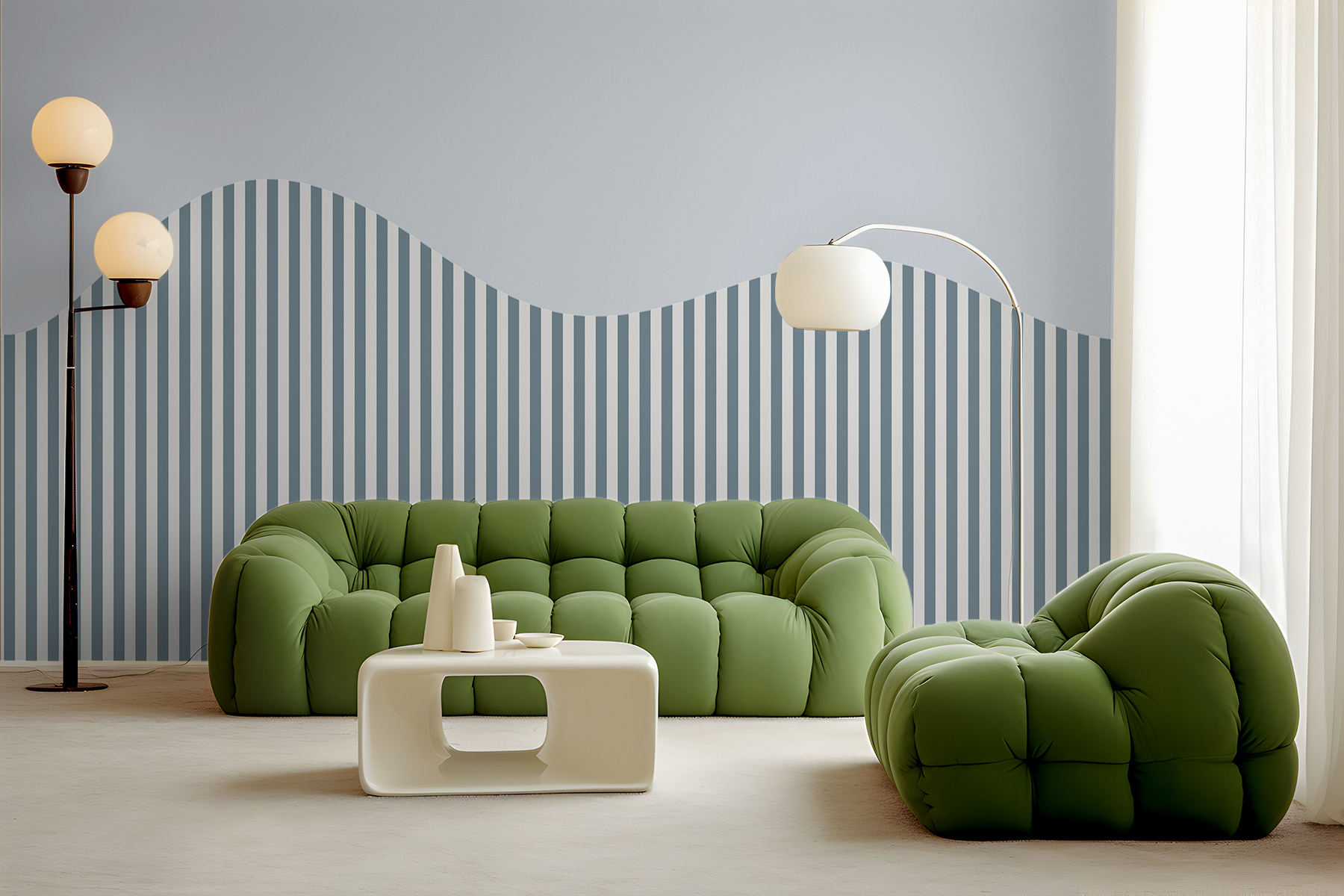 Képzelje el ezt: egy csendes délután egy csésze gőzölgő teával, kedvenc foteljébe süllyedve, a “Szürke és fehér csíkos háttér” falfestmény visszafogott eleganciája által körülvéve. Ez több, mint egyszerű csíkok – gondolj rá úgy, mint egy suttogott beszélgetésre a klasszikus és a modern hangulat között. A gyengéd hullámminta egy kis játékos csavart ad hozzá, igaz? Tökéletes azok számára, akik egyszerre vágynak nyugalomra és egy csipetnyi szeszélyre. Olyan, mintha saját, elegáns visszavonulási helyed lenne, ahol minden csík egy történetet mesél el. Számítson bókokra – nem véletlenül népszerű!