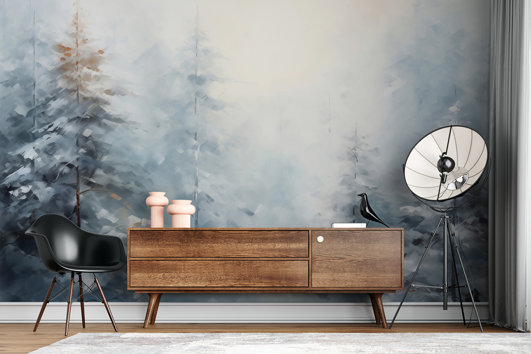 Képzelje el, hogy belép egy szobába, és úgy érzi, mintha egy nyugodt téli csodaországba repítette volna. Ez a falfestmény a hófödte fák álomszerű ábrázolásával ezt a varázslatos erdei hangulatot hozza el otthonába. Képzelje el, ahogy forró kakaót szürcsölgetve nézi, és érzi a levegőben a szelíd hideget – még akkor is, ha a nyár közepén járunk. Tökéletes a természet szerelmeseinek és azoknak, akiknek csak egy kis nyugalomra van szükségük a kaotikus életükben. Olyan, mint egy ölelés a természettől, fagyás nélkül. Hangulatos, hűvös és csodálatosan megnyugtató!