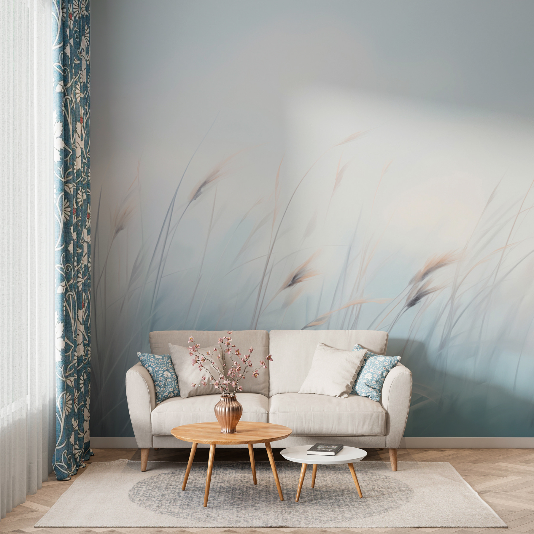 Képzelje el, hogy belép egy szobába, és egy nyugodt fűmező fogadja, amely a végtelenségig húzódik a ködös ég alatt. Ez a lenyűgöző falfestmény nem csak dekoráció – olyan, mintha a természet szelíd suttogása lenne közvetlenül a nappalijában. Tökéletes azokon a szürke reggeleken, amikor az ágyból való kikászálódás hősies cselekedetnek tűnik; burkolózzon be a ködös rét csendes nyugalmába anélkül, hogy felállna a kanapéról. Nagyszerű meditációs helyekre, vagy bárhová, ahol a természetből való menekülésre van szüksége – a bogarakat leszámítva! Fogadd el a nyugalmat, hagyd, hogy a puha fűszálak elringassák a gondjaidat.