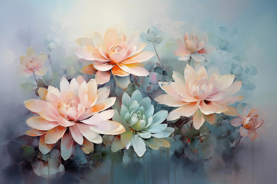 Képzelje el, hogy egy álomszerű kék világra ébred, ahol a virágok akvarell tűzijátékként törnek fel a falakon. Ez a falfestmény szívlágy szirmok pirosas és menta árnyalatokban táncolnak a lágy szellőben, és gyakorlatilag édes dolgokat suttognak. Tökéletes hangulatos zugokba vagy egy nyugodt olvasósarokba – olyan, mint egy kerti parti a szemednek. A barátok talán még a mondat közepén is megállnak, hogy elmerüljenek benne. Ideális mindenkinek, aki egy csipetnyi szeszélyes eleganciát szeretne az anyatermészet bájával vegyítve. És talán egy csipetnyi varázslatot is!