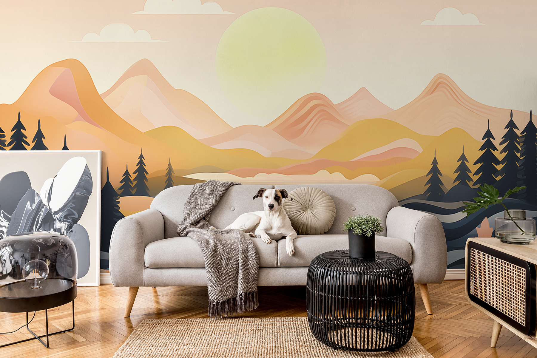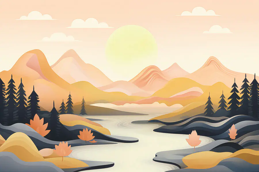 Képzeljen el egy ablakot, amely egy nyugodt völgyben csendesen kanyargó folyóra nyílik, amelyet lágy fényben fürdő hegyek kereteznek. Ez a falfestmény nem csak falfestmény – olyan, mintha egy békés pillanatot tartanál az időben megdermedve. Tökéletes bármely olyan helyiségbe, ahol egy kis nyugalomra vágyik. Képzelje el, ahogy hátradől egy csésze teával, miközben a természet szépsége díszíti a terét. Van valami azokban a lágy ívekben és nyugodt színekben, amelyek csak úgy suttognak a pihenésről. Olyan, mint a természet ölelése, bogarak nélkül. Ideális, mi?