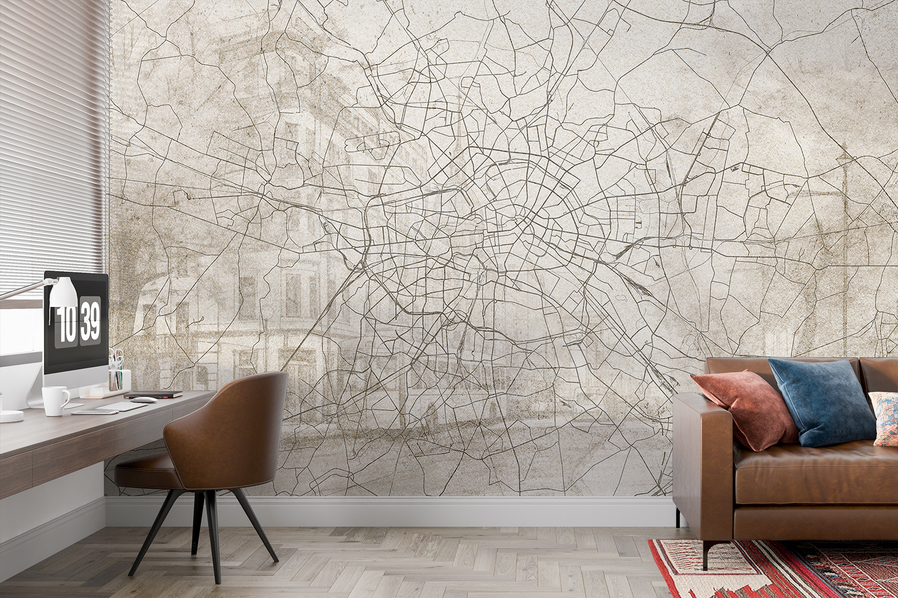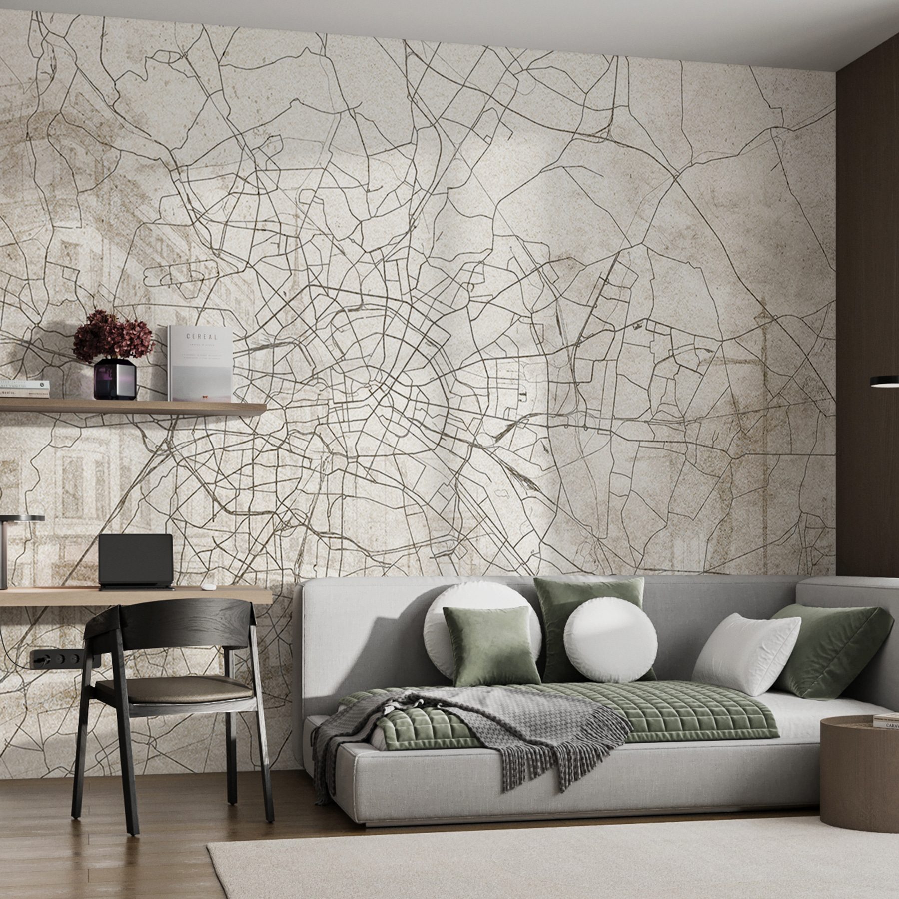 Képzelje el, hogy belép egy szobába, és egy bonyolult térképfreskó fogadja, amely feltárja a város titkait. Olyan, mintha madártávlatból látnád a várost anélkül, hogy felállnál a kanapédról. Ez a falfestmény kanyargós utakról és rejtett ösvényekről mesél, mintha egy modernkori felfedező lennél – a hólyagok nélkül. A földes tónusok zökkenőmentesen keverednek, és egy csipetnyi nosztalgia keveredik a kalanddal. Tökéletes az álmodozóknak és vándoroknak, akik szeretnek egy jó kis vándorlásra vágyó álmodozásban részesülni. Biztosan beszélgetéseket fog váltani – mindenki szeret “eltévedni” egy jó térképen!