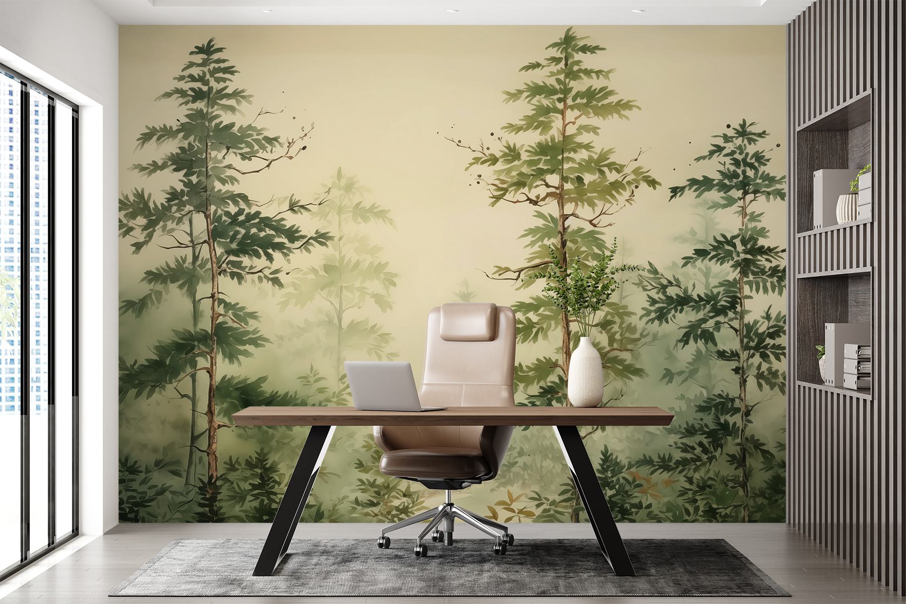 Képzelje el, hogy belép egy szobába, és hirtelen egy ködös erdő lágy suttogása veszi körül. Ez a falfestmény olyan, mint a természet saját ölelése – a ködös zöldek és barnák gyengéd ölelése, amely olyan nyugalmat teremt, amely felmelegíti a lelket. Tökéletes azok számára, akik a vadon érintésére vágynak, anélkül, hogy a csizmájuk sárba kerülne. Akár teát szürcsölsz, akár könyvet olvasol, vagy csak álmodozol, olyan érzés, mintha a fák szurkolnának neked. Ki gondolta volna, hogy a falak képesek erre? Ez egy titkos menedék, egyenesen a nappalidban.