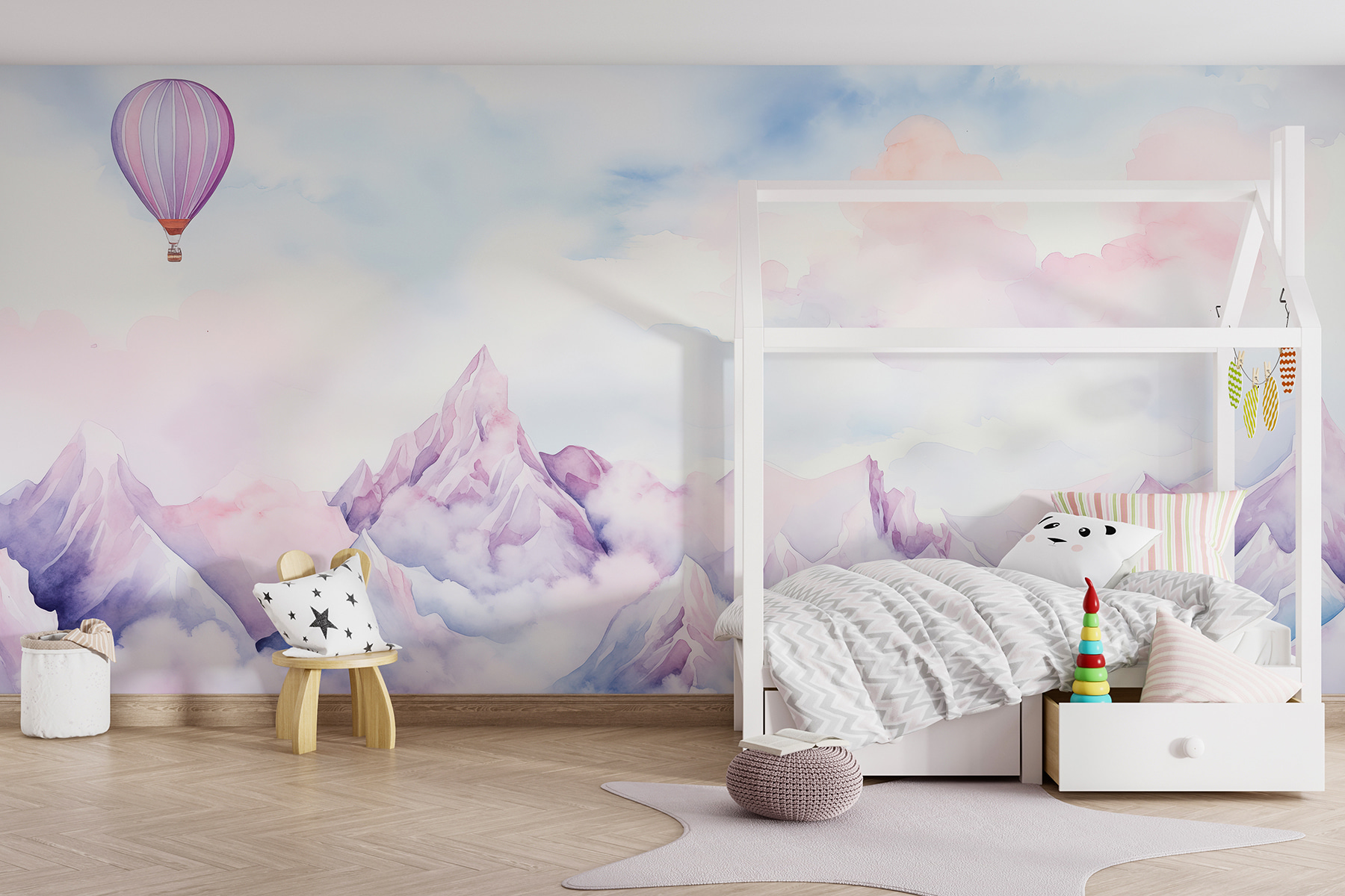 Képzelje el, hogy belép egy szobába, és hirtelen elrepül – ködös hegyek fölött vitorlázik, egy hőlégballon lágyan lebeg a feje fölött. A suttogóan lágy színek olyan érzést keltenek benned, mintha egy álomszerű akvarellfestményen élnél. Olyan, mintha a nyugalomba szóló jegyet közvetlenül a faladon tartanád! Tökéletes mindenkinek, aki szereti a kalandot anélkül, hogy elhagyná a kanapéját. Ráadásul a reggeli kávéja egy kicsit varázslatosabb ízű lesz ezzel a kilátással. Ideális azok számára, akik a világot nem olyannak látják, amilyen, hanem olyannak, amilyen lehetne.