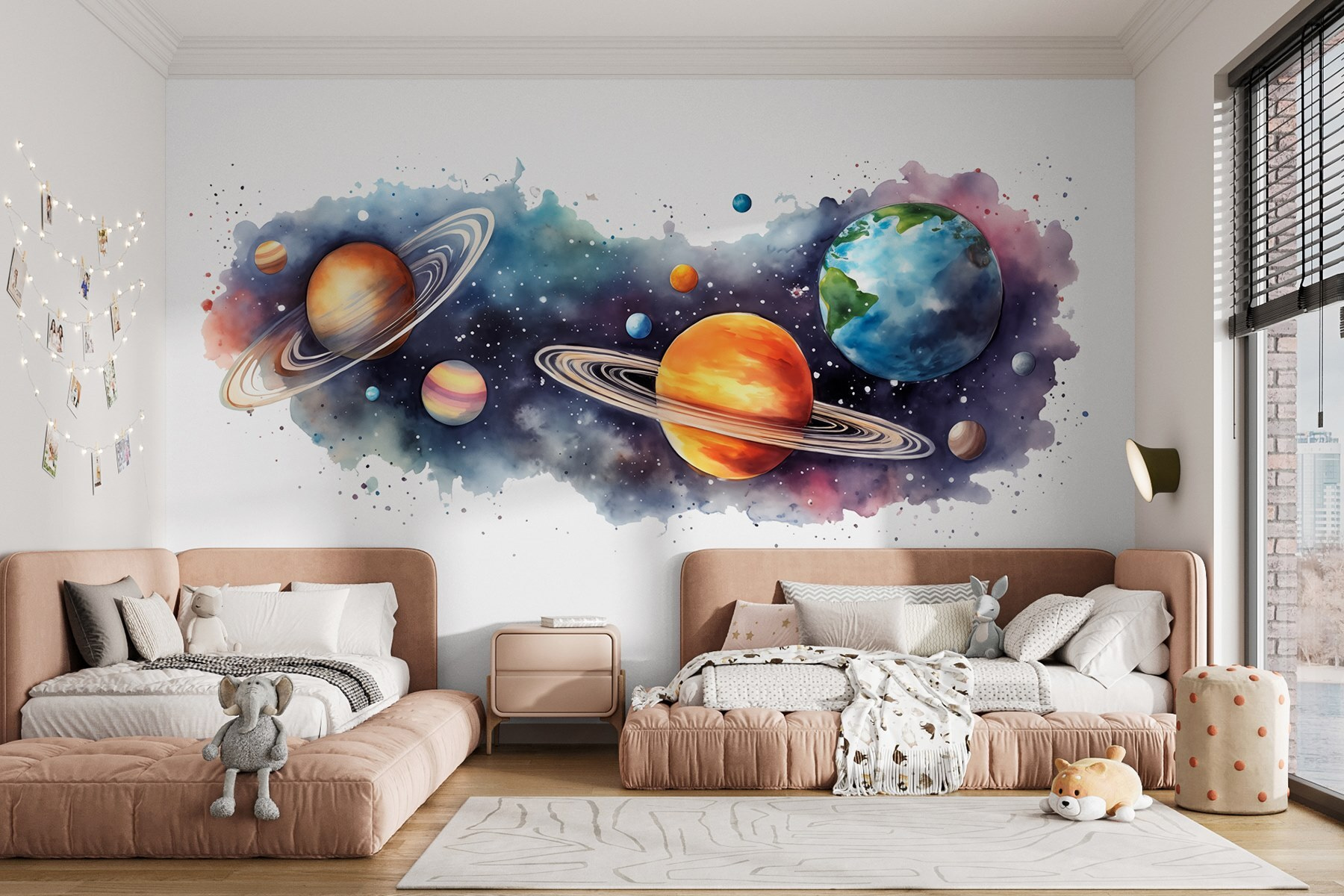 Álmodott már arról, hogy a saját nappalijából fedezze fel az univerzumot? Ez a “Bolygók és csillagok” falfestmény a kozmoszt egyenesen az Ön falára hozza – anélkül, hogy űrhajóra lenne szüksége! Képzelje el, ahogy a Szaturnusz és a Jupiter társaságában kortyolgatja a reggeli kávéját. Olyan, mintha az első sorból nézhetné a galaxist. Gyerekek és felnőttek egyaránt érezni fogják a csillagok csodálatát, akárhányszor elsétálnak mellette. Tökéletes a titokzatosság és az áhítat bármilyen térbe való beillesztéséhez. Bónusz: nulla gravitáció szükséges. Ki gondolta volna, hogy a belsőépítészet lehet ilyen csillagos?