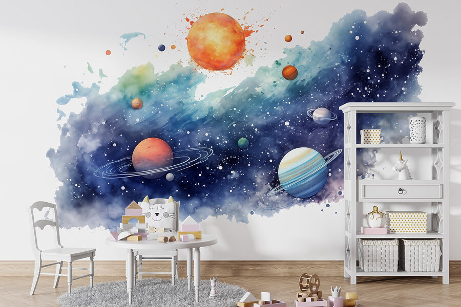 Alakítsa át terét kozmikus csodavilággá ezzel a lenyűgöző falfestménnyel, a “Bolygók az égen bolygókkal” cíművel. Olyan, mintha az univerzumot egyenesen a nappalidba hoznád – rakétahajó nélkül. Képzelje el, hogy hátradől, bámulja ezeket a gyönyörűen megmunkált bolygókat, és úgy érzi, mintha a csillagok között lebegne. A lágy akvarell dizájn álomszerűvé varázsolja a szobát, így bármelyik szoba tágasabbnak és kalandosabbnak tűnhet.