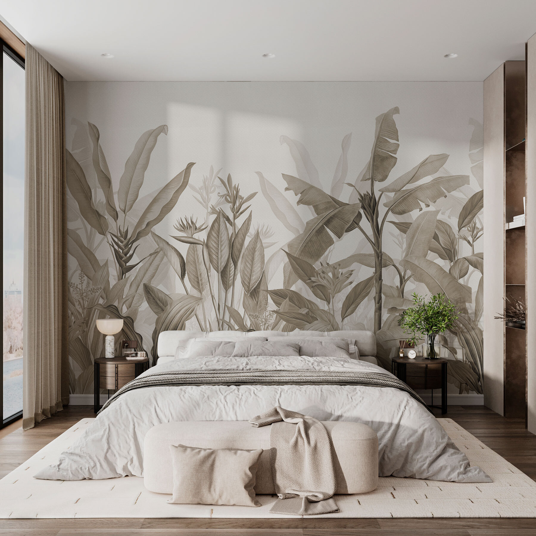 Képzelje el, hogy minden alkalommal, amikor belép a szobájába, egy nyugodt dzsungelbe lép. Az “Elegáns levelek monokróm dzsungele” falfestmény a faladat egy nyugodt meneküléssé változtatja – útlevél nélkül! Minden a buja hangulatról szól, de nyugtató monokróm tónusokban, amelyek nem kiabálnak rád. Gondolj a csendes reggelekre egy kávéval, a kedvenc könyveddel és egy váratlan baráttal – egy buja zöld levéllel, amely mintha titkokat suttogna. Tökéletes a természet szerelmeseinek, akik egy kis dzsungelre vágynak a bosszantó bogarak nélkül.