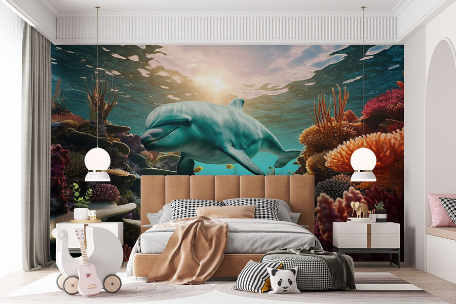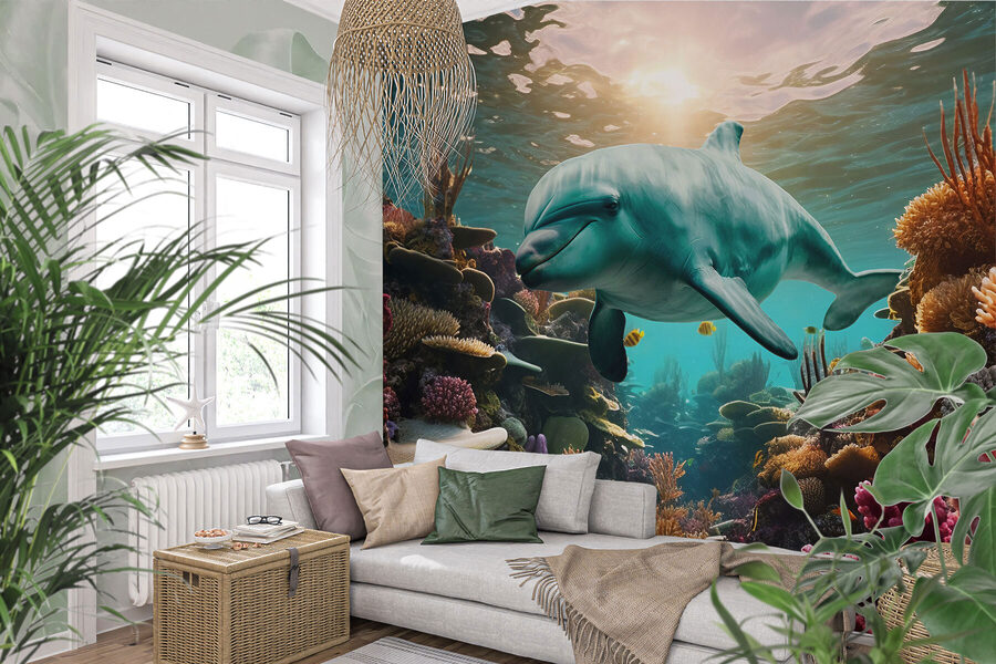 Merüljön el a nyugalom csobbanásába ezzel a falfestménnyel, amelyen egy delfin úszik nyugodtan a vibráló óceánban. Képzelje el, ahogy a falak egy álomszerű víz alatti meneküléssé alakulnak át, színes korallokkal és vidám halakkal. Olyan, mintha egy ablakot nyitna egy fényes, békés óceánra közvetlenül az otthonában. A barátok biztosan megállnak és bámulni fognak, és azon tűnődnek, hogy vajon egy akváriumba léptek-e be. Képzelje csak el, hogy erre a lenyűgöző látványra ébred, és minden nap egy kicsit nyugodtabbnak érzi magát. Ez nem csak dekoráció; ez egy mindennapi kaland, ami csak arra vár, hogy megtörténjen. Ez a falfestmény tökéletesen alkalmas a szellős tengerparti hangulat megteremtésére, és napsütést és örömet hoz bármely térbe!