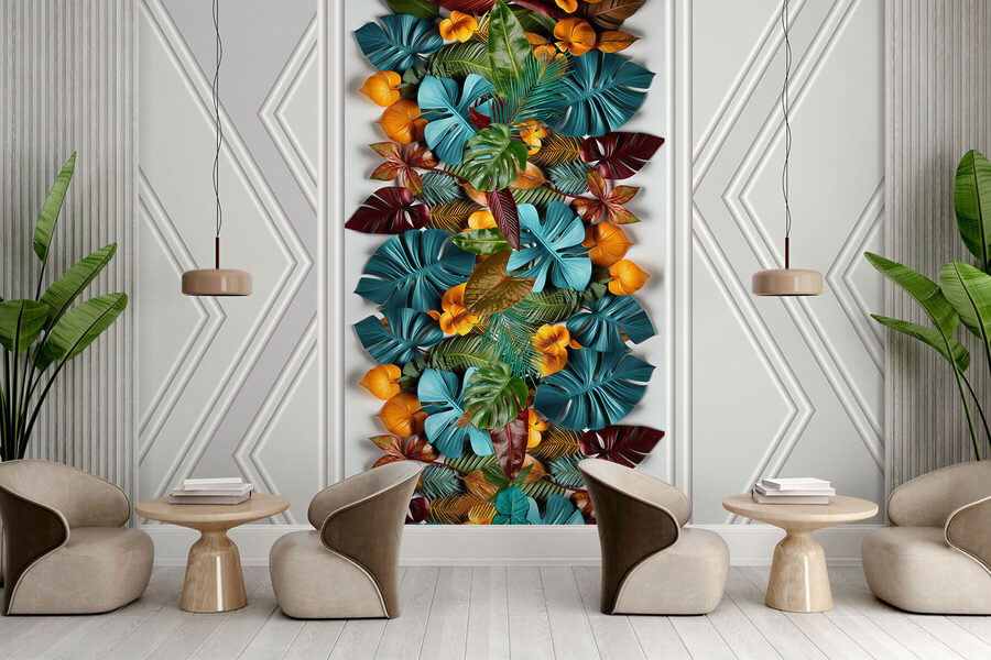 Alakítson át bármilyen helyiséget ezzel a varázslatos falfestménnyel, amely egy fehér ajtót ábrázol, amelyet színes levelek sokasága vesz körül. Olyan, mintha egy napsütötte trópusi üdülést hozna egyenesen a helyiségedbe! Képzelje el, hogy minden reggel egy vibráló dzsungelre ébred – az élénk zöldek és a narancssárga színű pöttyök garantáltan örömet és talán még álmodozást is kiváltanak. Tökéletes a nappaliba vagy az otthoni irodába, játékos hátteret teremt, amely egyszerre pihentető és energetizáló. Képzelje el, hogy vendégül látja barátait, és hallja, ahogyan áradoznak az egyedi dekorációjáról. Ki ne szeretne egy ilyen buja hangulatban sütkérezni? Ez az egész az elutazás hangulatáról szól anélkül, hogy elhagyná az otthonát!