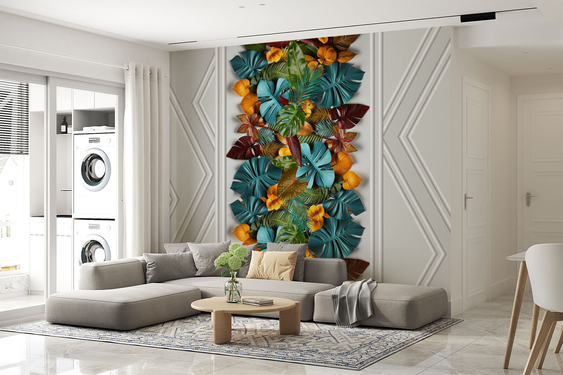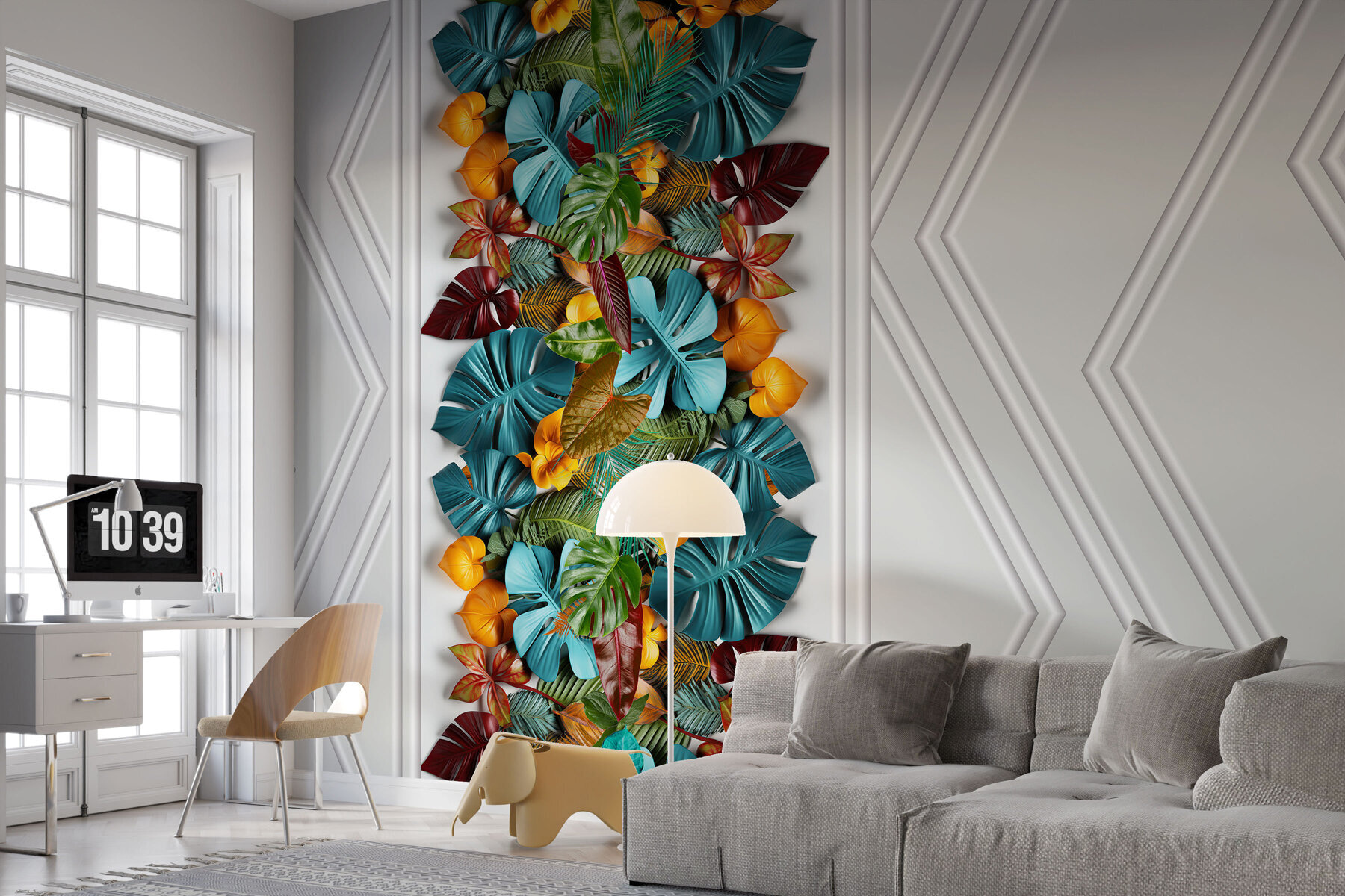 Alakítson át bármilyen helyiséget ezzel a varázslatos falfestménnyel, amely egy fehér ajtót ábrázol, amelyet színes levelek sokasága vesz körül. Olyan, mintha egy napsütötte trópusi üdülést hozna egyenesen a helyiségedbe! Képzelje el, hogy minden reggel egy vibráló dzsungelre ébred – az élénk zöldek és a narancssárga színű pöttyök garantáltan örömet és talán még álmodozást is kiváltanak. Tökéletes a nappaliba vagy az otthoni irodába, játékos hátteret teremt, amely egyszerre pihentető és energetizáló. Képzelje el, hogy vendégül látja barátait, és hallja, ahogyan áradoznak az egyedi dekorációjáról. Ki ne szeretne egy ilyen buja hangulatban sütkérezni? Ez az egész az elutazás hangulatáról szól anélkül, hogy elhagyná az otthonát!