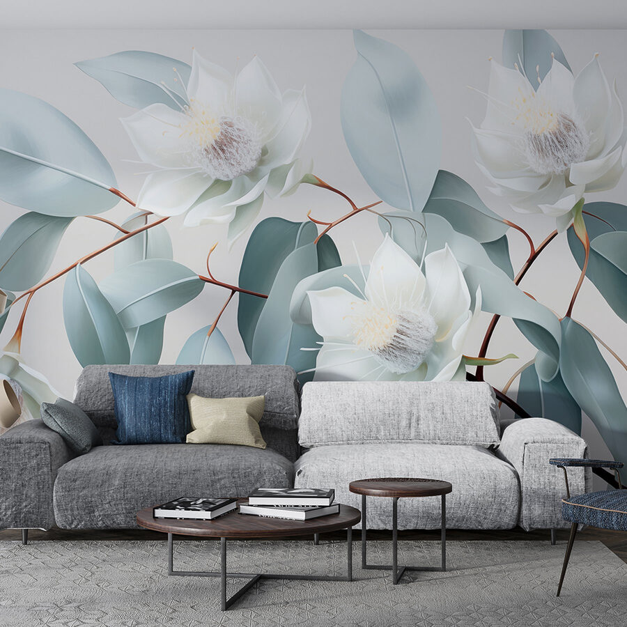 Alakítsa át terét egy nyugodt meneküléssé ezzel a lenyűgöző falfestménnyel, a “Fehér virágok és levelek egy ágon” cíművel. Képzeld el, hogy minden reggel ezekre a finom virágokra ébredsz, és hagyod, hogy nyugodt szépségük lágy szellőként árasszon el téged. A lágy színek és a bonyolult részletek nyugtató hátteret teremtenek, amely tökéletes egy hangulatos olvasósarokba vagy egy elegáns étkezőbe. Olyan, mintha egy kis természetet hozna be a házba, de a bosszantó pollenek nélkül! A barátok megjegyzik majd, milyen üdítő érzés a tér, és minden növénykedvelő haverja irigyelni fogja. Komolyan, ki gondolta volna, hogy a dekoráció ilyen egyszerű és élvezetes lehet? Csak egy pillantás, és nehéz nem mosolyogni.