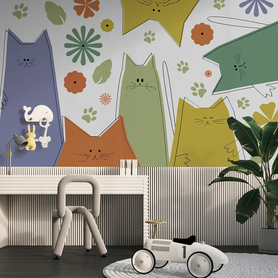 Vigyen egy kis szeszélyt bármelyik szobába ezzel a bájos falfestménnyel, amely egy mókás macskabandát ábrázol, amely élénk virágok és levelek között téblábol. Képzeld el ezeket a bájos kis arcokat, amint falról falra ugrálnak, és játékos energiájukkal feldobják a teret. Tökéletes a macskák szerelmeseinek – ki ne szeretné, ha a dekorációjuk egy kis személyiséget tükrözne? Olyan, mintha lenne egy háziállatod, anélkül, hogy az alomdobozra kellene vigyáznod! Képzelje el a hangulatos estéket egy macskákkal teli paradicsomban, teát kortyolgatva, és magába szívva a bolyhos hangulatot. Ez a falfestmény nem csak díszít; az öröm és a játékosság történetét meséli el, így bármely helyiséget otthonosnak érezheted.