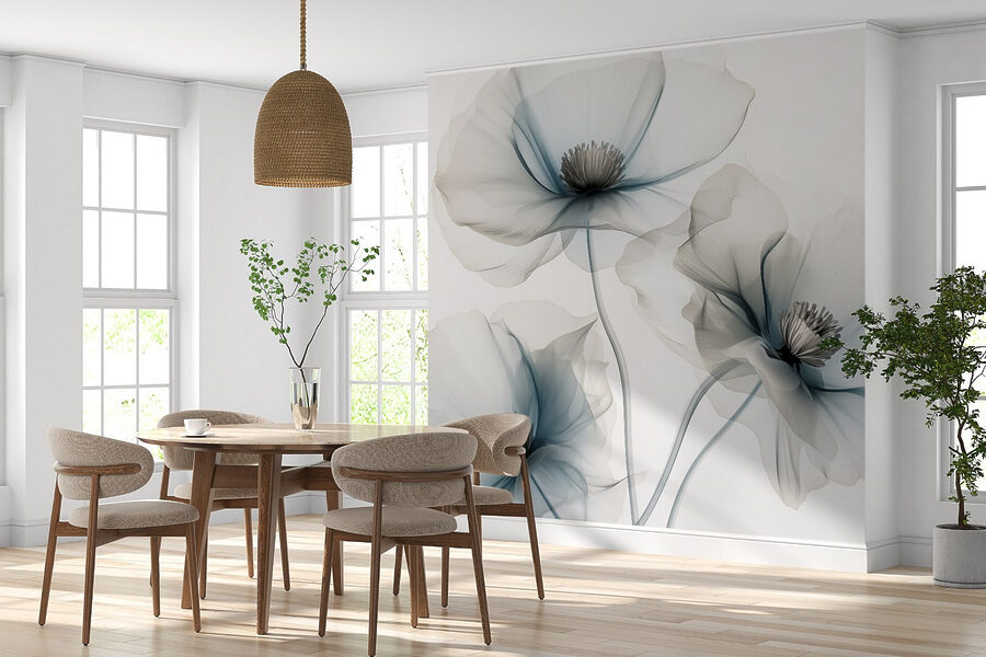 Bármely szobát nyugodt meneküléssé varázsolhatsz ezzel a bájos falfestménnyel, amelyen finom virágok láthatók lágy világoskék árnyalatokban. Eleganciát és nyugalmat sugároz, meghívva Önt egy békés visszavonulásra. Képzelje el, ahogy kávét szürcsölgetve, a reggeli fényben sütkérezve táncolnak ezek a gyönyörű virágok a falán. Olyan szelíden ragadják meg a természet esszenciáját – tökéletes azokon a napokon, amikor a világ egy kicsit túl hektikusnak tűnik. Ráadásul ez egy elegáns módja annak, hogy egy kis színt adjon a tér elárasztása nélkül. Nincs szükség kertre! Fogadd el a szépséget, és hagyd, hogy a falaid meséljenek egy történetet.