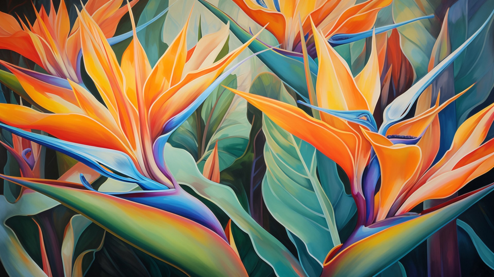 Alakítsa át terét a “Bright Blooms” falfestménnyel, amely egy vibráló színrobbanás, amely gyakorlatilag tavaszt kiált. Képzelje el: belép egy szobába, és narancssárga és kék virágok élénk tánca fogadja, amelyek minden egyes szirma látszólag trópusi szellők titkait suttogja. Olyan, mintha egy kertet hoznál be a házba, anélkül, hogy zöld hüvelykujjra vagy alkalmi locsolókannára lenne szükséged.